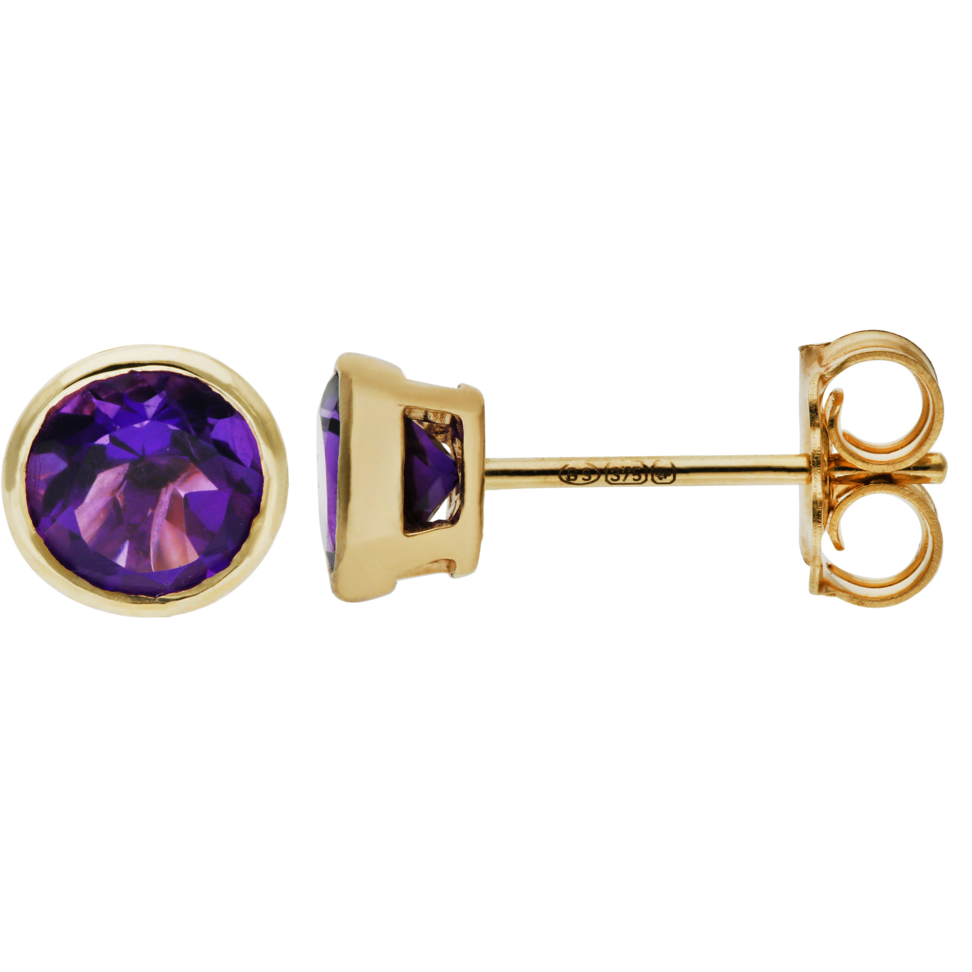 Enhance your style with our 9ct Yellow Gold 0.85ct Amethyst Solitaire Round Shape Stud Earrings. These exquisite earrings feature vibrant round cut amethysts, each set in a sleek bezel crafted from high quality 9ct yellow gold. The rich purple hue of the amethysts beautifully contrasts with the warm gold, creating a look that is both timeless and sophisticated.