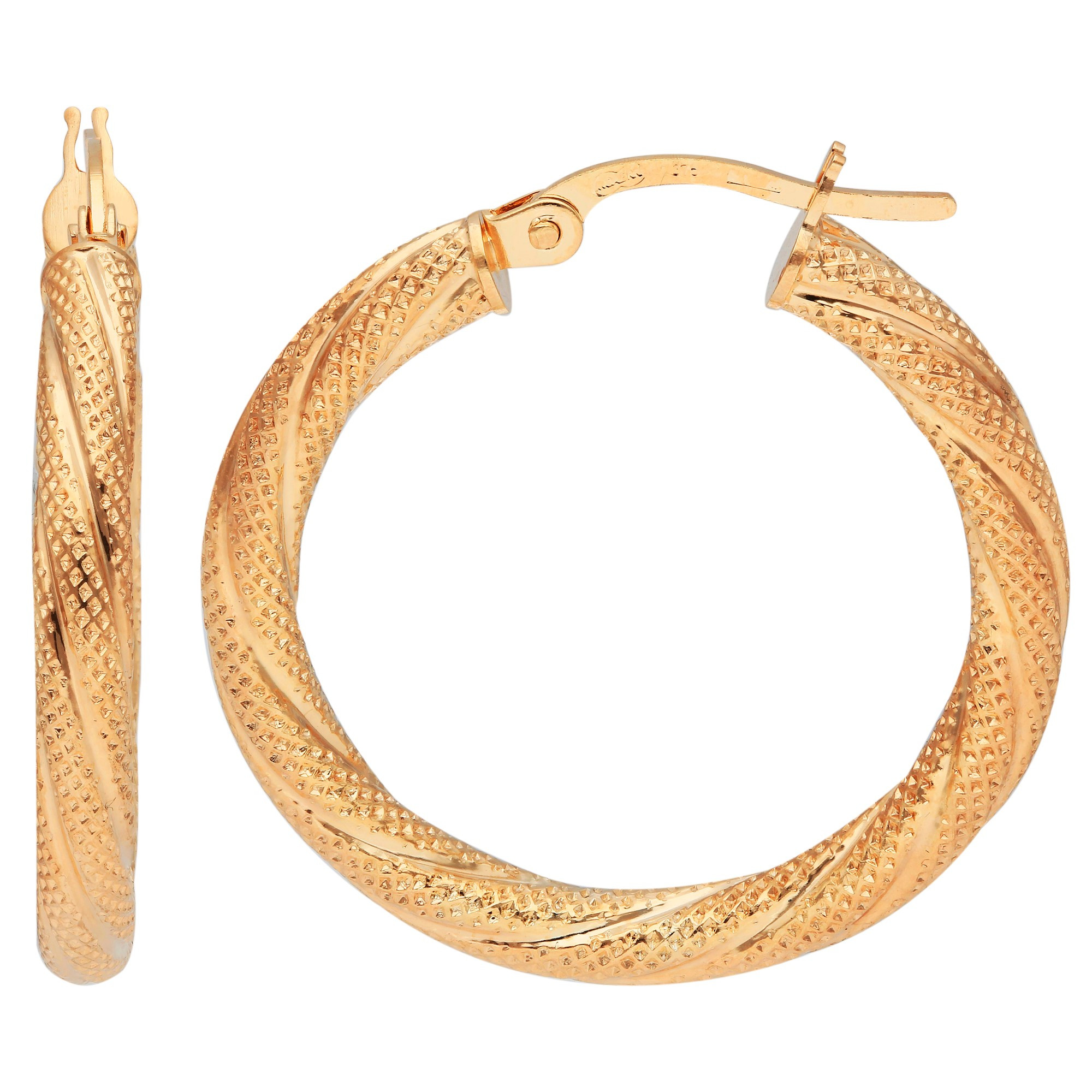 Elevate your accessory game with our Women’s 9ct Yellow Gold 25mm Fancy Frosted Twisted Hoop Earrings. These elegant earrings feature a captivating twisted design with a sophisticated frosted finish that subtly catches the light, offering a unique visual texture. Crafted from high-quality 9-carat yellow gold, they boast a warm, radiant lustre that complements any skin tone. The 25mm size ensures these hoops make a statement while remaining versatile for both day and evening wear. Fitted with secure backs for comfort and stability, these hoop earrings are perfect for anyone looking to add a touch of timeless elegance and a hint of modern flair to their jewellery collection.