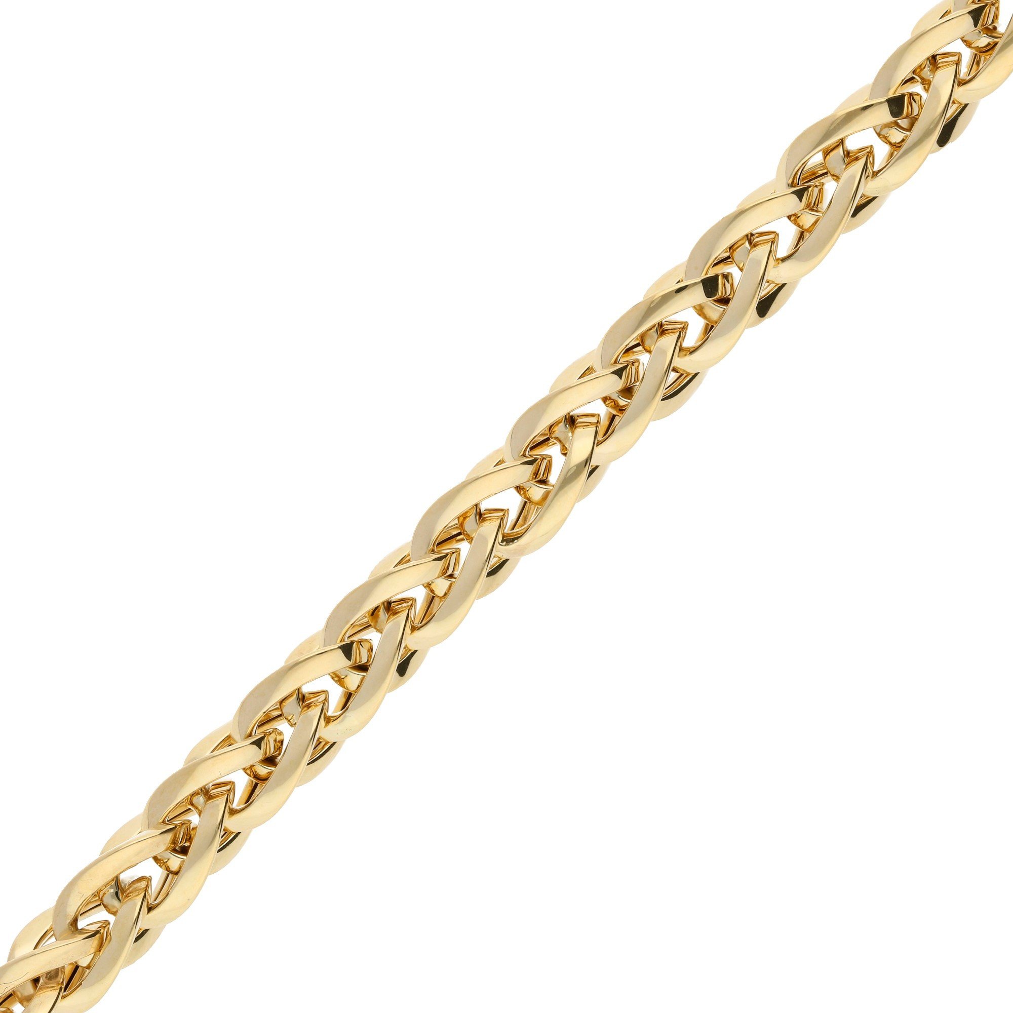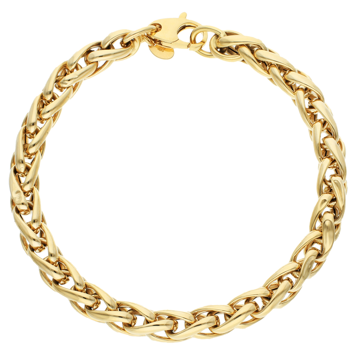 This bracelet is perfect for those who want to make a statement with their jewellery, whether it's worn on its own or layered with other pieces. The classic yellow gold colour complements any outfit and adds a touch of luxury and sophistication to any style.