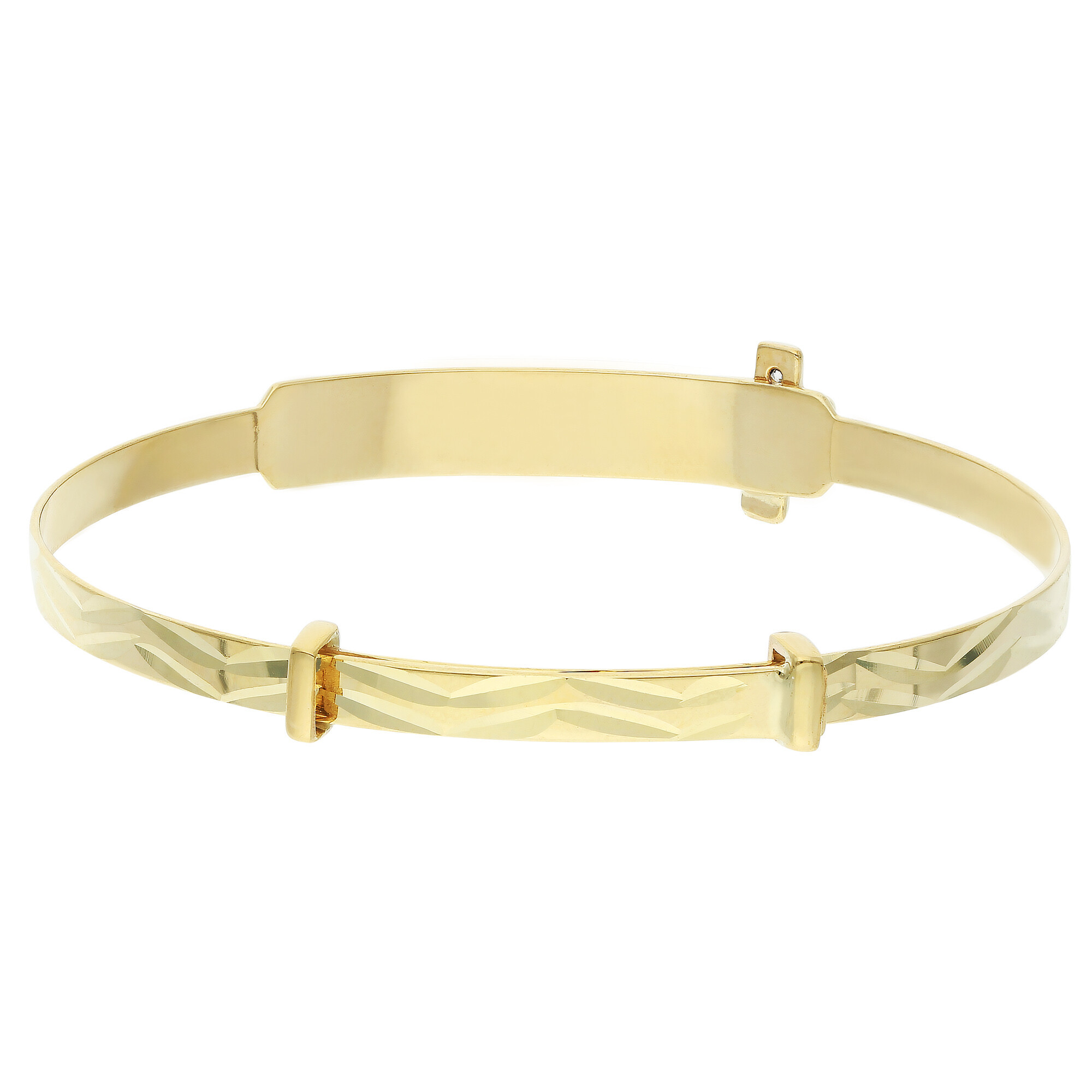 Elevate your baby's style with the '9ct Yellow Gold Babies Cubic Zirconia Cross Expandable Bangle,' a testament to British craftsmanship and tradition that will be treasured for generations.