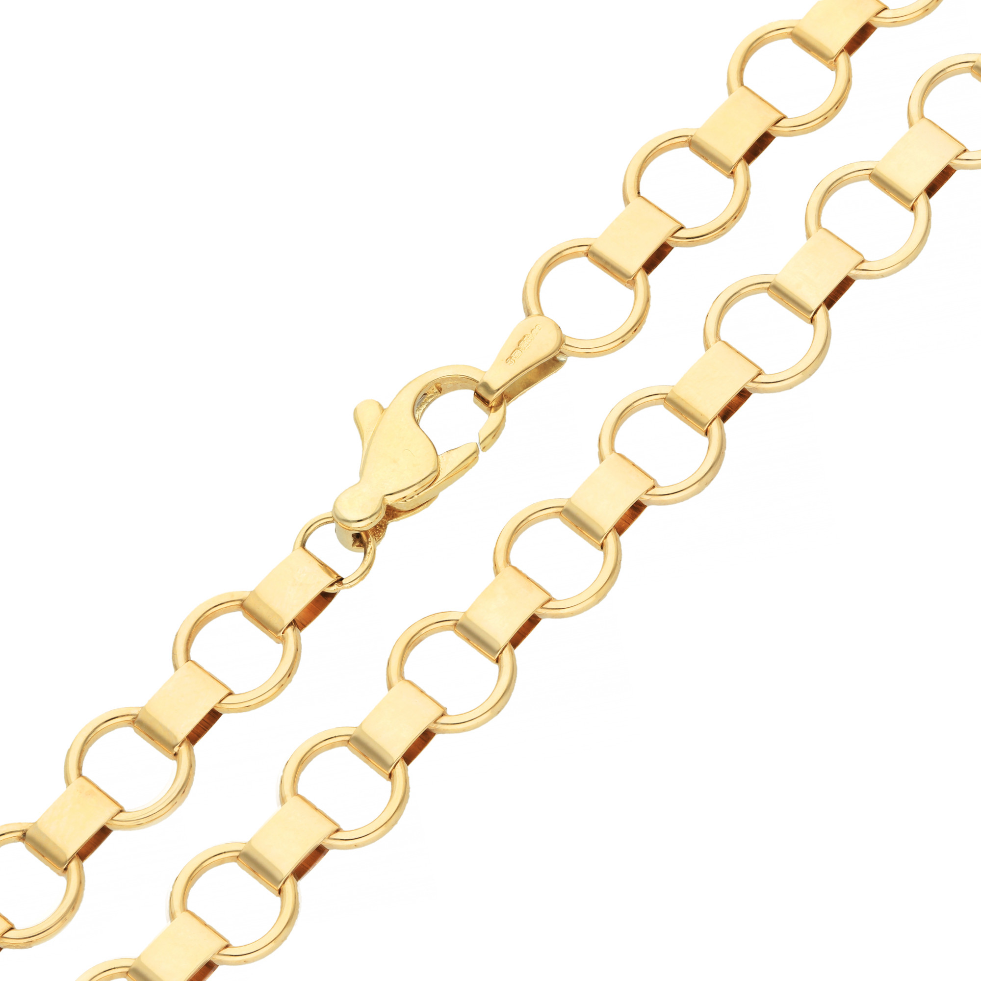 This striking 9ct yellow gold chain necklace is crafted from large flat belcher links, offering a bold yet classic design. The smooth, polished finish of the links enhances their timeless appeal, making this necklace a versatile accessory that can be worn alone or layered with other pieces. Whether paired with casual outfits or used to elevate formal attire, the chunky style of the belcher links adds a touch of sophistication. Perfect for those who appreciate statement jewellery, this gold chain necklace is a stylish addition to any collection.