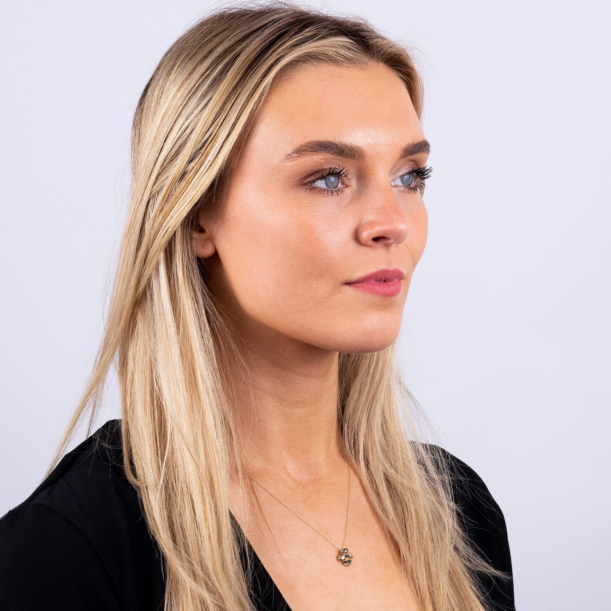Whether you're looking to treat yourself or searching for the perfect gift, this bee pendant is sure to delight. Its unique design combines the beauty of precious stones with the timeless allure of gold, making it a standout piece in any jewellery collection. Experience the magic of this delightful piece and let it bring a smile to your day. Ideal for those who cherish nature-inspired jewellery with a luxurious twist.