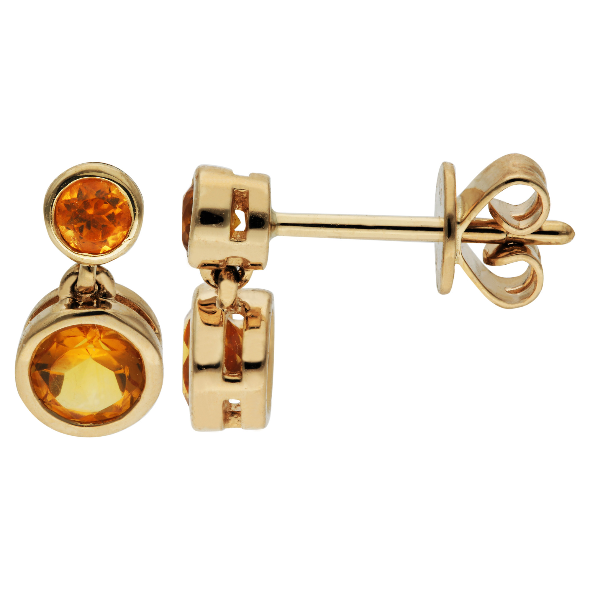 Discover the elegance of our 9ct Yellow Gold 0.50ct Citrine Womens Earrings. Each earring features two radiant round cut citrine stones, bezel set and linked together in a graceful drop design. The top stone is slightly smaller, creating a harmonious and balanced look. These earrings are designed with posts and scroll backs for secure and comfortable wear. The warm golden hue of the citrine beautifully complements the yellow gold setting, making these earrings a perfect accessory for any outfit. Add a touch of sophistication to your jewellery collection with these stunning earrings, ideal for both everyday wear and special occasions.