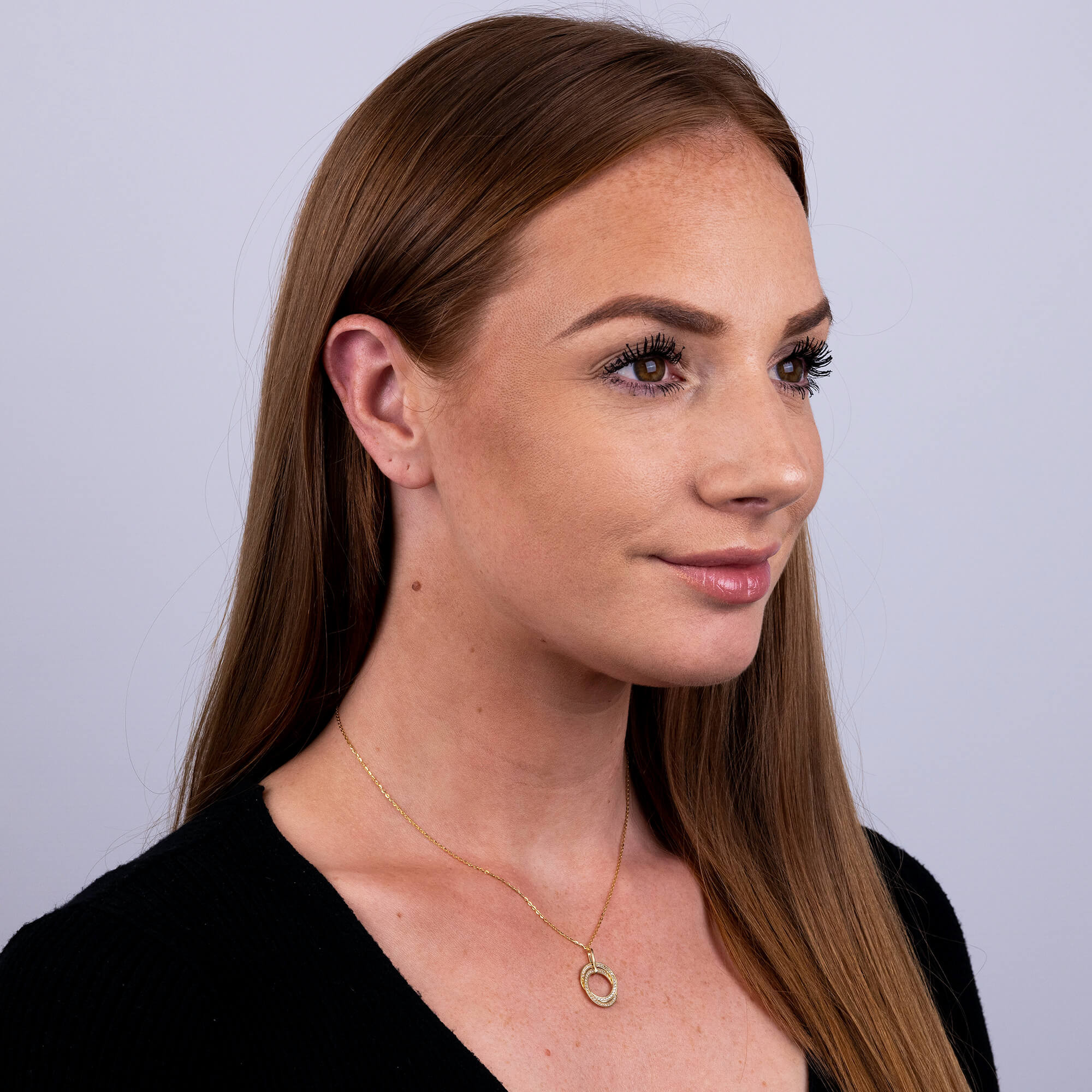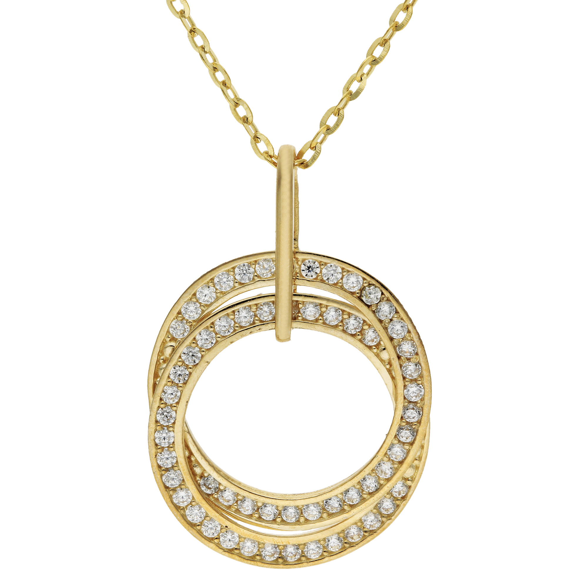 Introducing our exquisite Cubic Zirconia & 9ct Yellow Gold Pendant, a symbol of eternal connection and sparkling elegance. This stunning piece features two interlocking circles of yellow gold, each delicately set with tiny cubic zirconias that catch the light with every movement. The pendant is suspended from a polished bail and comes complete with a chain, allowing you to choose the perfect length from the dropdown menu to suit your style. Ideal for adding a touch of glamour to any outfit, this pendant is perfect for those who appreciate sophisticated jewellery with a meaningful design. Whether as a gift for a loved one or as a special treat for yourself, this pendant is sure to be cherished.