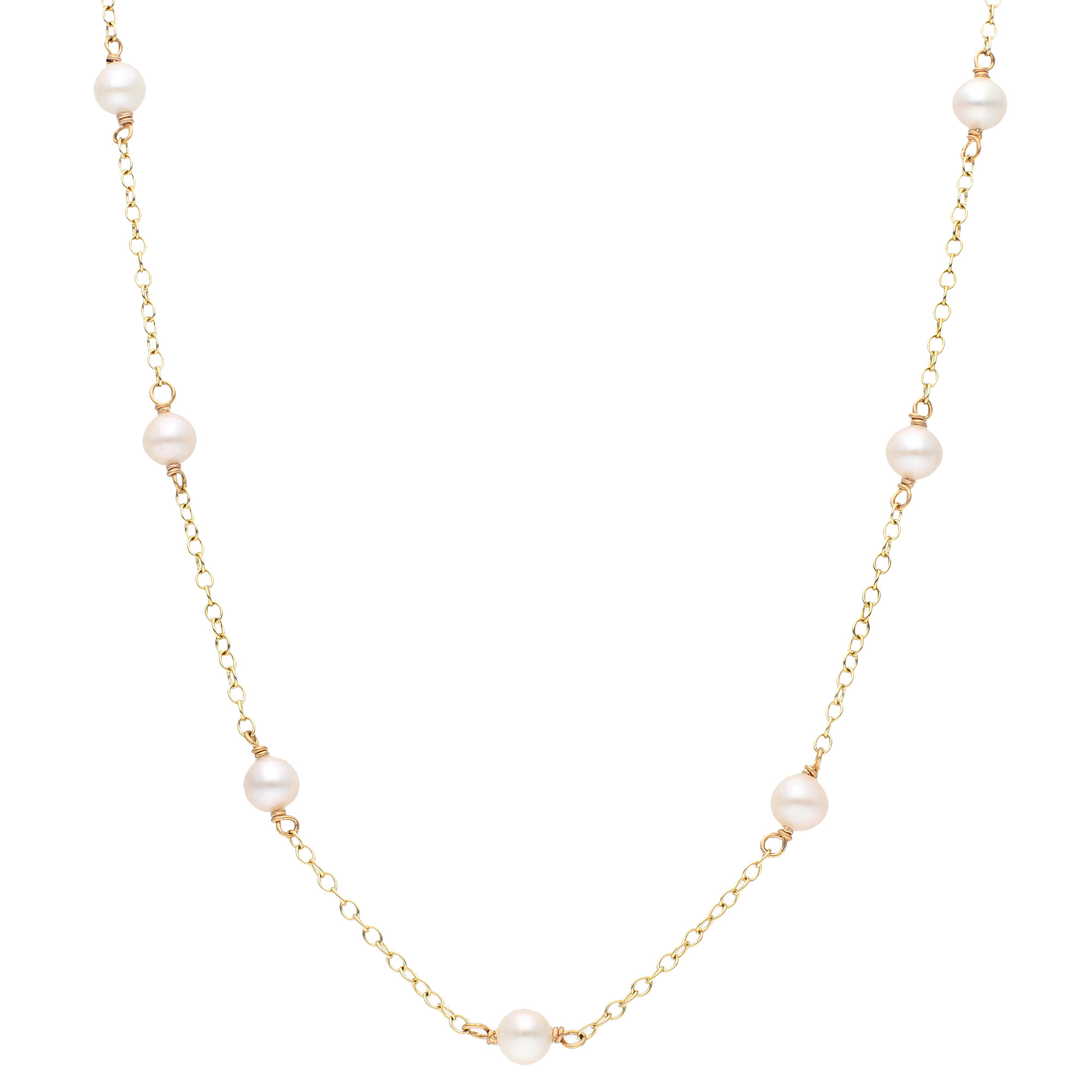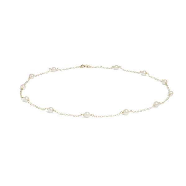 Introducing our stunning 9ct Yellow Gold Pearl Necklace, an elegant addition to any fine jewellery collection. This exquisite necklace features round cultured river pearls, each bead perfectly stationed along short lengths of delicate trace chain. The soft lustre of the pearls paired with the warm glow of the yellow gold provides a classic yet contemporary look, making this necklace a versatile piece for both daytime elegance and evening glamour. Whether you're dressing up for a special occasion or adding a touch of sophistication to your everyday wear, this pearl necklace is sure to enhance your ensemble with its timeless beauty and refined style.