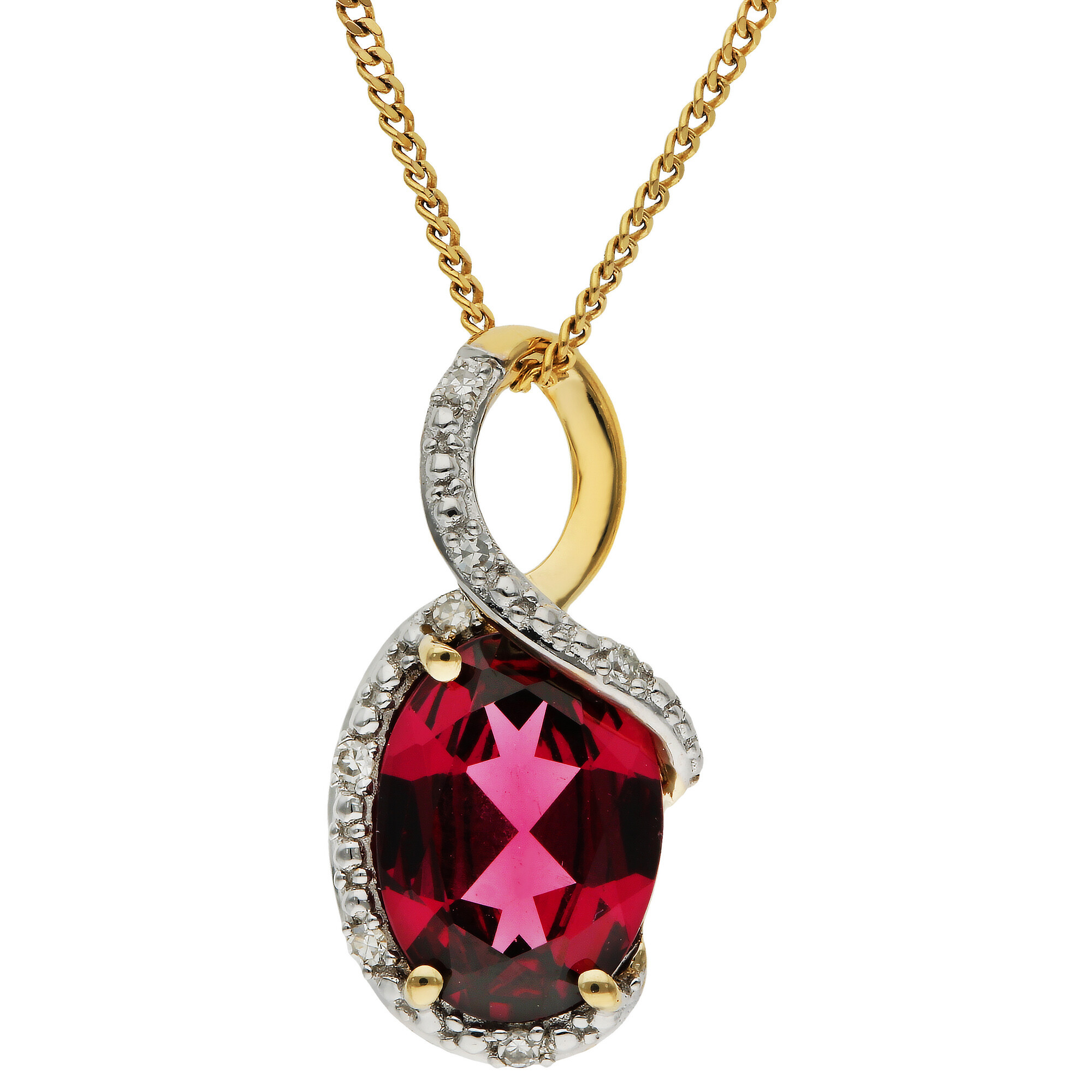 Discover the captivating allure of this 9ct Yellow Gold Diamond & Garnet Pendant, a piece that exudes elegance and sophistication. At the heart of the pendant lies a beautifully faceted oval garnet, its deep red hues framed by a swirl of white gold, which is delicately accented with a sprinkling of tiny diamonds. This pendant hangs gracefully from an 18-inch chain, with the option to select other lengths via the drop-down menu to suit your style preferences. Whether it's a gift for a loved one or a treat for yourself, this pendant is sure to enhance any jewellery collection, providing a touch of glamour to any occasion.