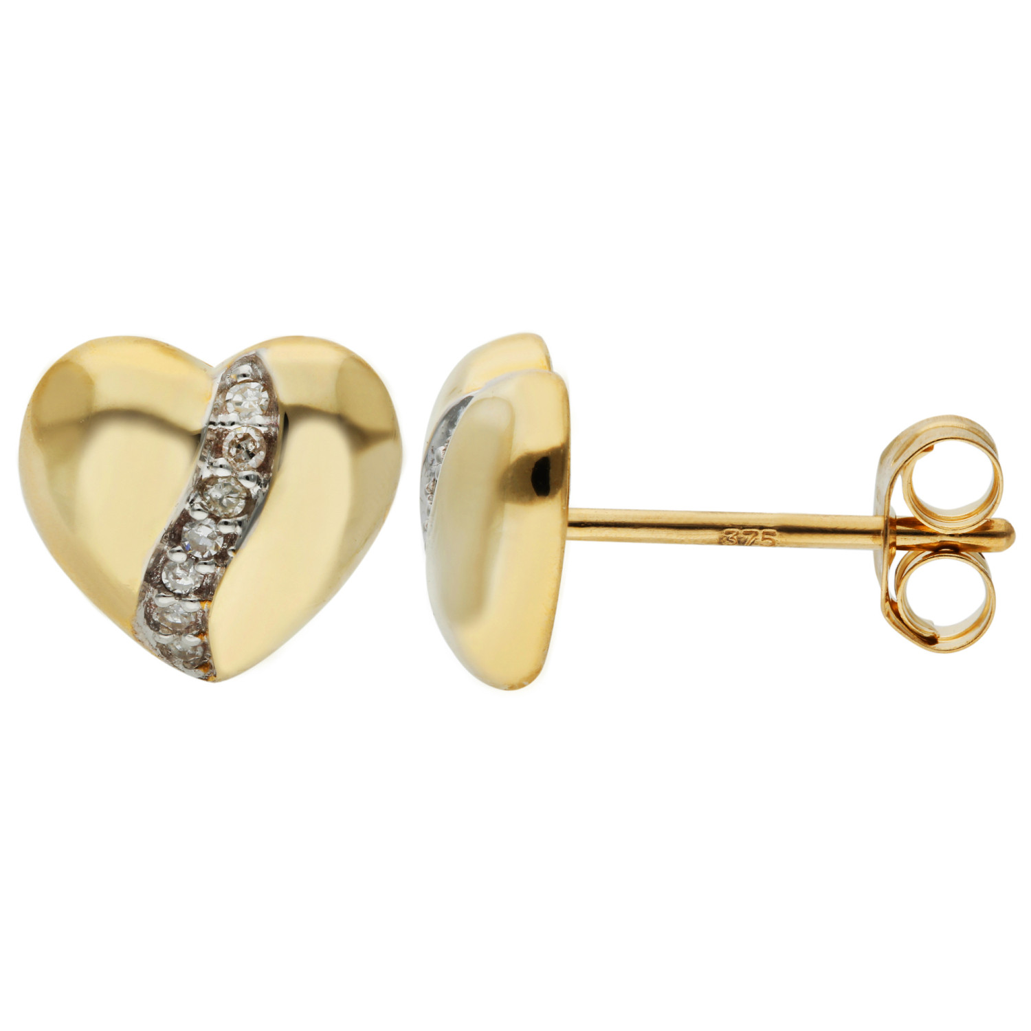 Discover the unique charm of our 9ct Yellow Gold Heart Earrings, featuring a distinctive diamond accent split across the middle. These heart-shaped stud earrings blend timeless elegance with a modern twist, creating a captivating piece perfect for today's fashion-forward woman. The shimmering diamond accent adds a touch of glamour, beautifully contrasting with the warm hues of the 9ct yellow gold, making these earrings a standout addition to any jewellery collection.