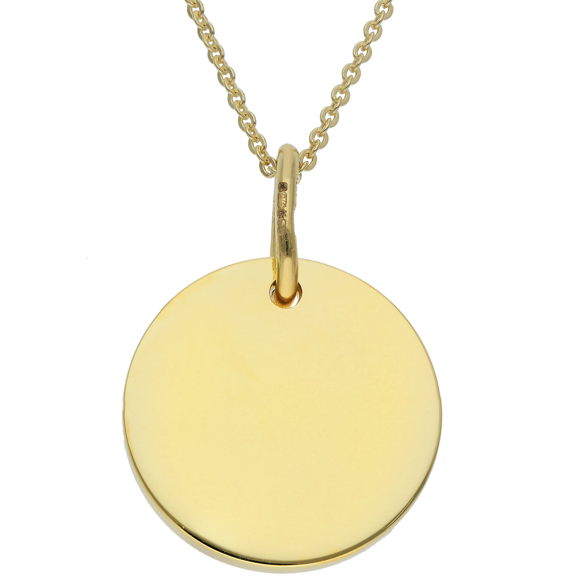 Add a timeless touch of elegance to your jewellery collection with this classic 9ct yellow gold disc pendant. Expertly crafted with a smooth, polished finish, the round disc catches the light beautifully and offers a minimalist yet luxurious look. Suspended from an adjustable 16 to 18 inch chain, it sits gracefully at the neckline for everyday wear or special occasions.