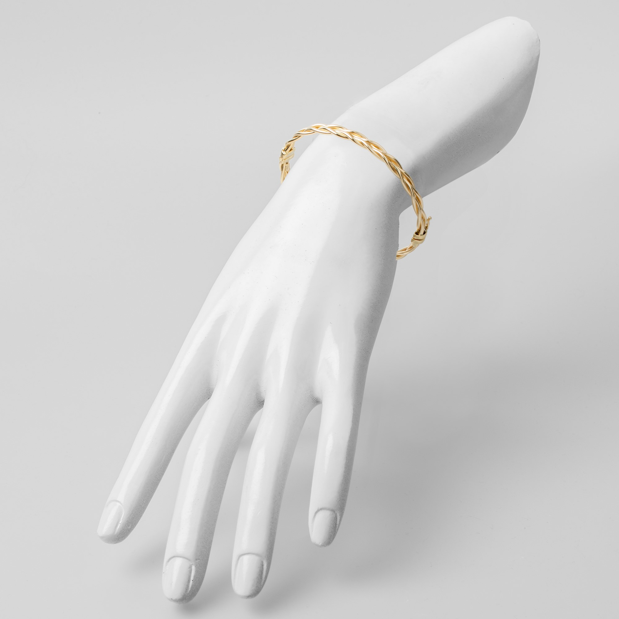 Discover the understated elegance of our 9ct Yellow Gold Bangle, featuring a unique double twist design that exudes sophistication. This sleek and stylish bangle is beautifully crafted with a hinge and secures effortlessly with a box catch, ensuring both safety and comfort. Its graceful contours make it a versatile piece, perfect for adding a touch of glamour to everyday outfits or for enhancing your evening wear on special nights out. Whether you're looking for a chic accessory to complement your wardrobe or a memorable gift for someone special, this bangle offers timeless beauty that will be treasured for years to come.