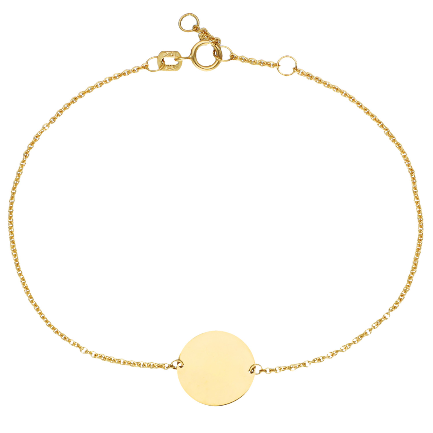 Made from exquisite 9ct yellow gold, this bracelet features a round disc that can be engraved with a name, date, or special message of your choice, making it a meaningful and personalised gift. The delicate and adjustable chain adds a touch of versatility, ensuring a comfortable fit for any wrist.