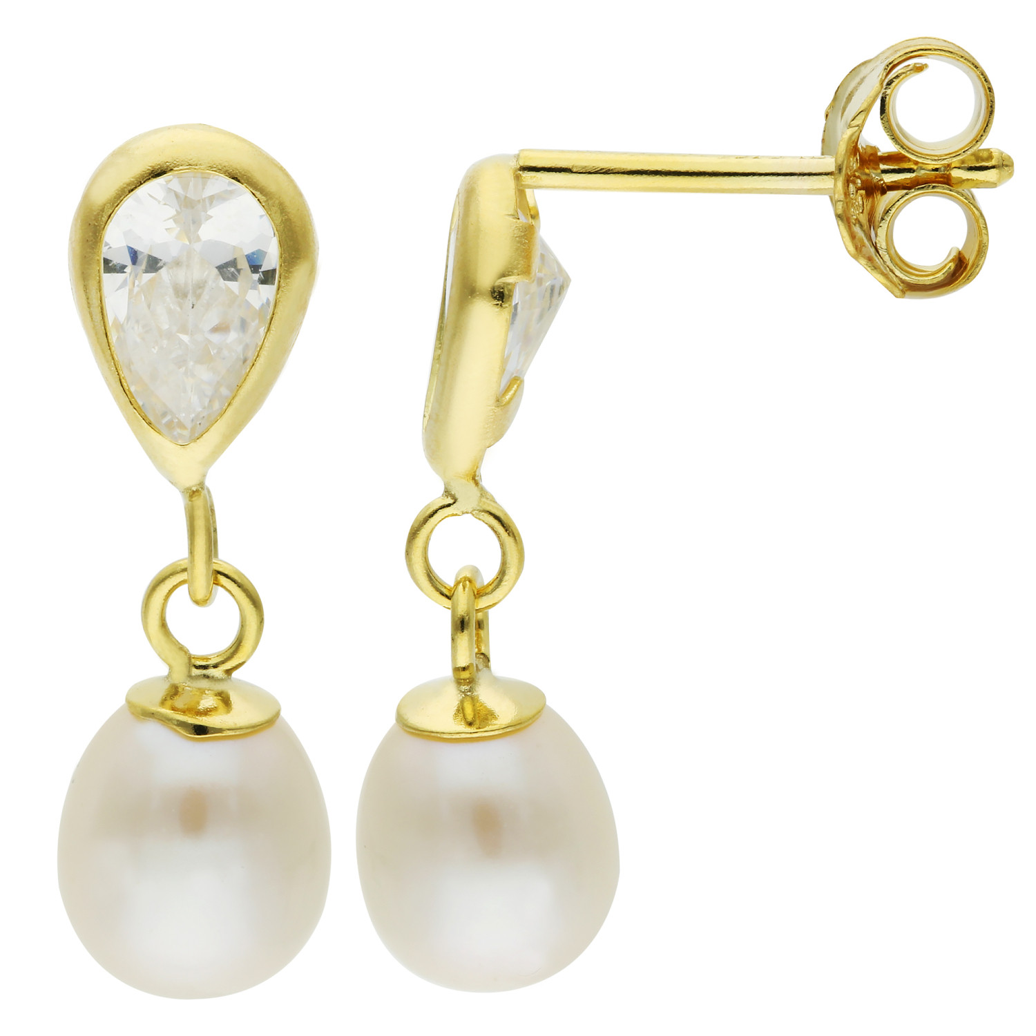 9ct Yellow Gold Cubic Zirconia & Pearl Drop Earrings
