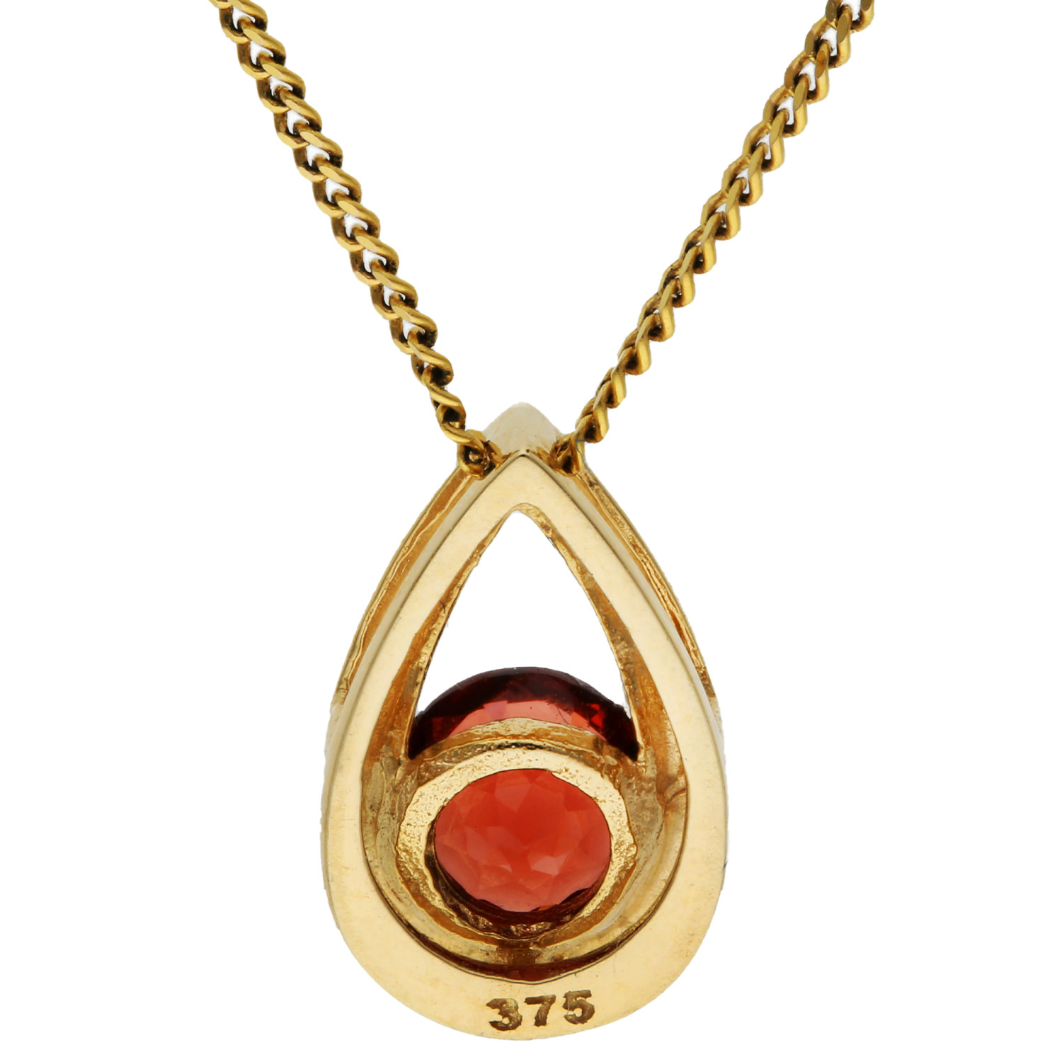 Discover the deep, rich allure of our 9ct Yellow Gold 0.25ct Garnet Pendant. Crafted with precision, this elegant pendant features a teardrop-shaped design in lustrous yellow gold that gracefully encases a round faceted garnet at its heart. The garnet, known for its vibrant red tones and symbolic properties of passion and vitality, is beautifully highlighted against the golden backdrop. This pendant dangles charmingly from a chain, and you can select your preferred length from the options available in the dropdown menu, ensuring a perfect fit for any occasion. Ideal for adding a splash of colour to your wardrobe, this garnet pendant makes a stunning statement of sophistication and style.