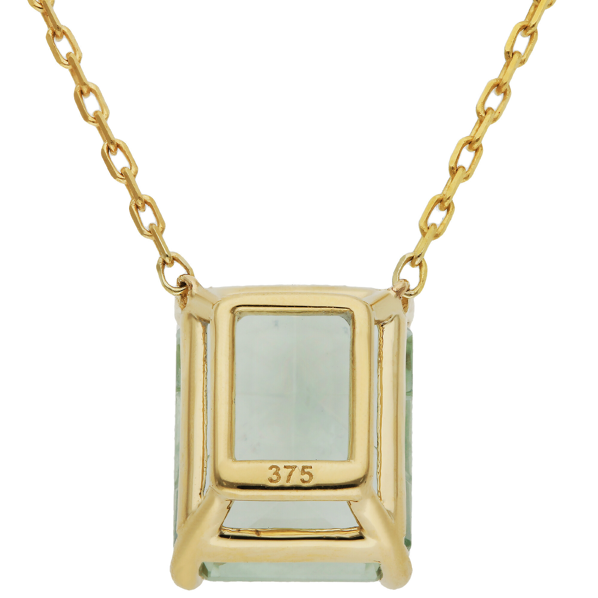 Unveil the subtle elegance of this 9ct Yellow Gold Green Amethyst Necklace, an exquisite piece that combines classic style with a touch of modern craftsmanship. At the centre of this design lies a rectangular faceted green amethyst, featuring a unique linear pattern faceted into the back of the stone, which creates a captivating starburst effect when light passes through. This pendant is elegantly hung on an integral adjustable chain, which can be altered from 16 to 18 inches to suit different styles and necklines. Perfect for those who appreciate jewellery with a distinctive flair, this necklace is sure to add a touch of sophistication to any look.