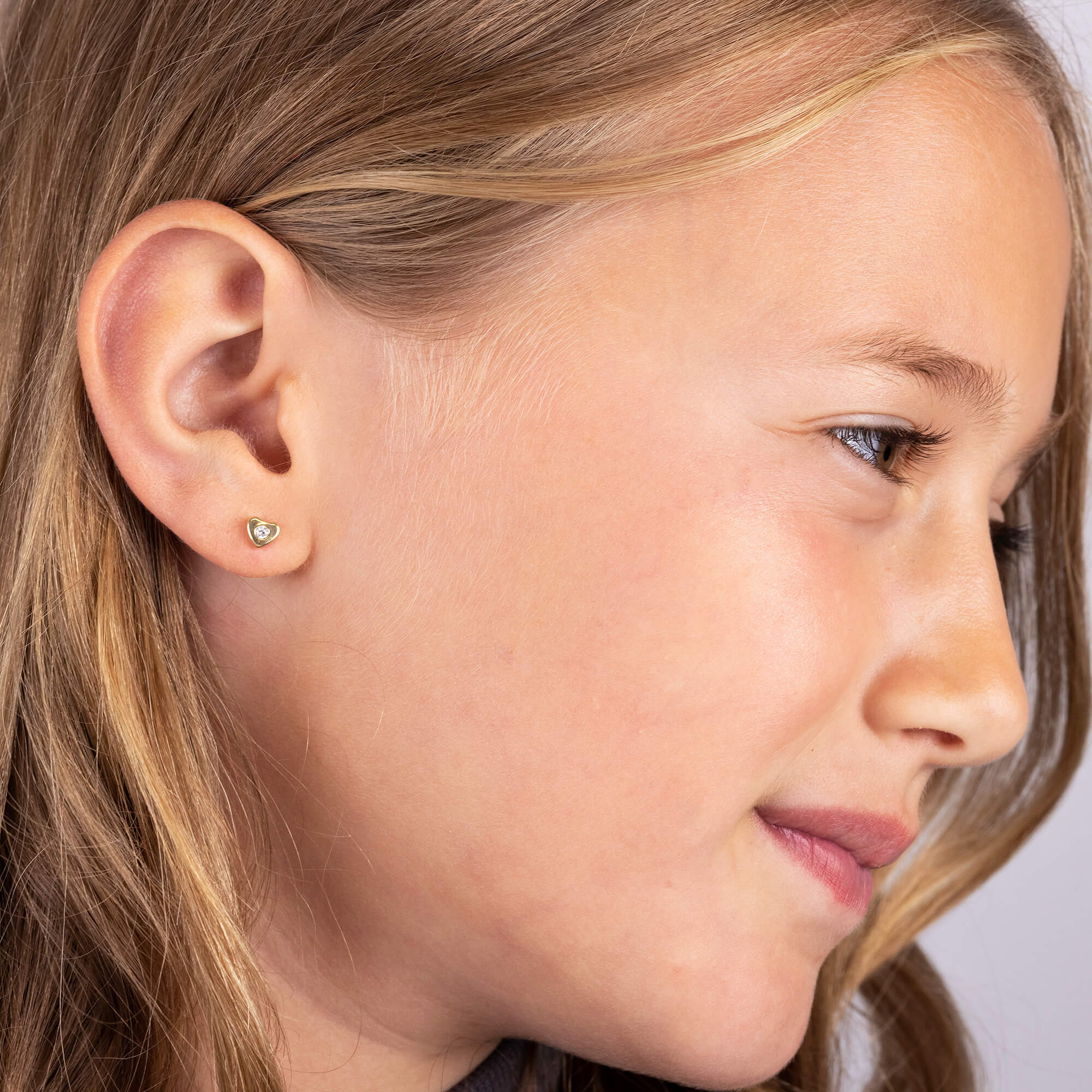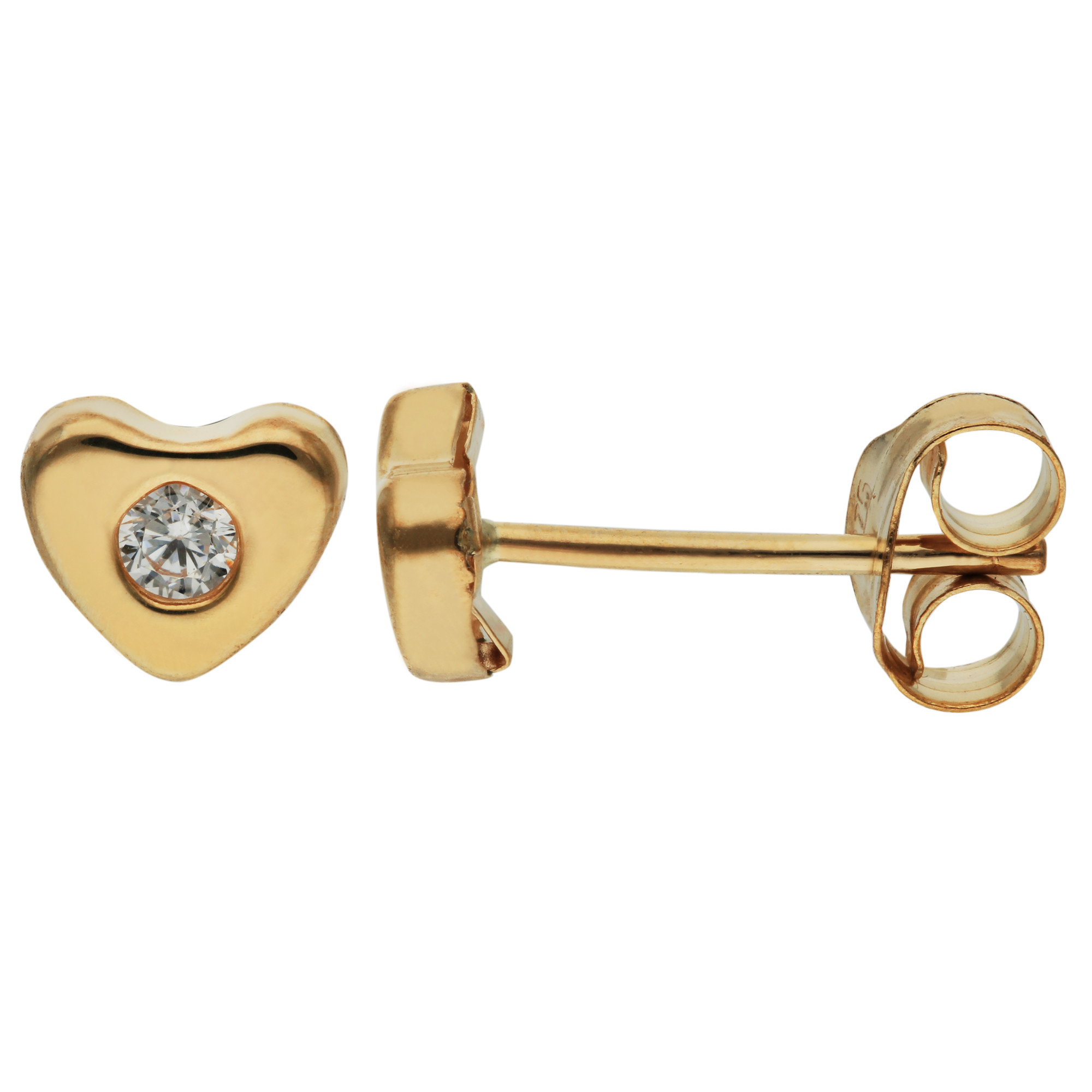 Introduce a touch of sparkle and timeless charm to your little one's jewellery collection with our 9ct Yellow Gold Heart Earrings. Designed with love and care, these chunky gold heart earrings are beautifully set with dazzling cubic zirconia, offering the perfect blend of elegance and playfulness, ideal for children, daughters, nieces, and granddaughters.