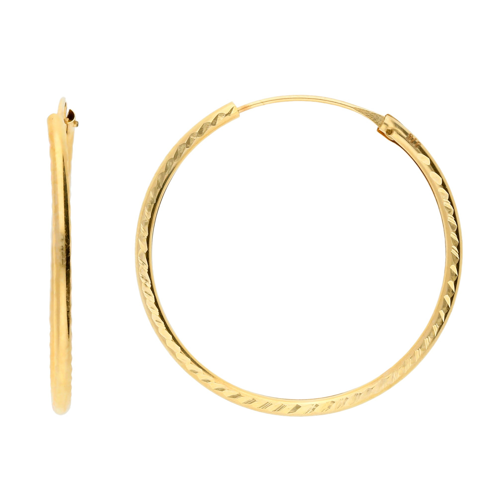 Discover the exquisite craftsmanship of our 25mm 9ct Yellow Gold Sleeper Hoop Earrings, a stunning addition to any woman's jewellery collection. Featuring a dazzling diamond cut pattern, these earrings reflect light beautifully, creating a spectacular sparkle with each movement. Made from high-quality 9ct yellow gold, they offer both timeless beauty and lasting durability. The 25mm diameter provides a perfect balance between elegance and noticeable flair, making them suitable for both everyday wear and special occasions. The secure sleeper clasp ensures they stay in place comfortably, providing peace of mind throughout the day. Upgrade your accessory game with these chic and stylish hoop earrings, ideal for anyone seeking a touch of luxury and sophistication.