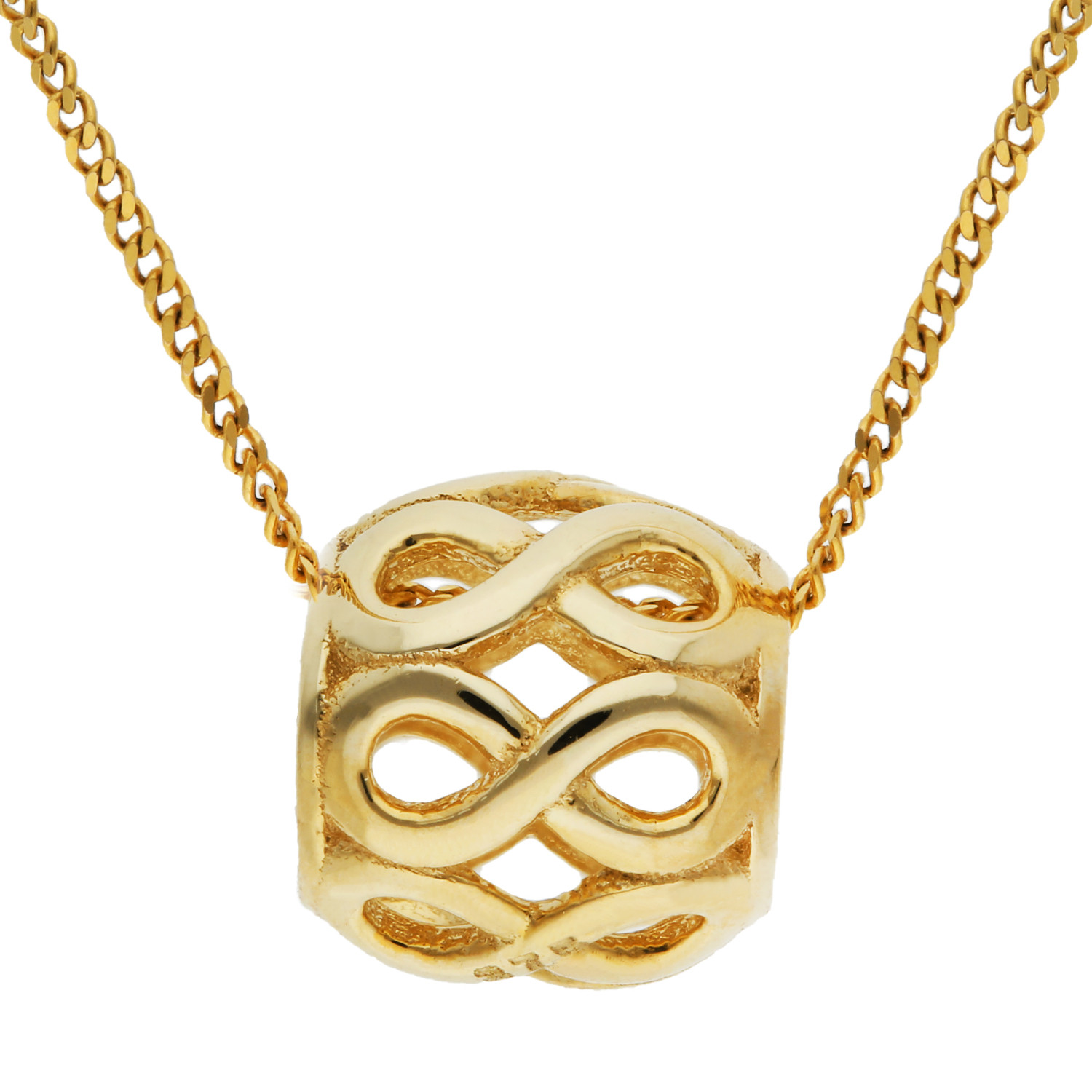 Discover timeless elegance with this beautifully crafted 9ct yellow gold pendant. The pendant features a unique bead design, intricately formed from a series of infinity symbols, symbolising eternal love and connection. The polished gold finish enhances its sophisticated appeal, making it a versatile and meaningful accessory for any jewellery collection.