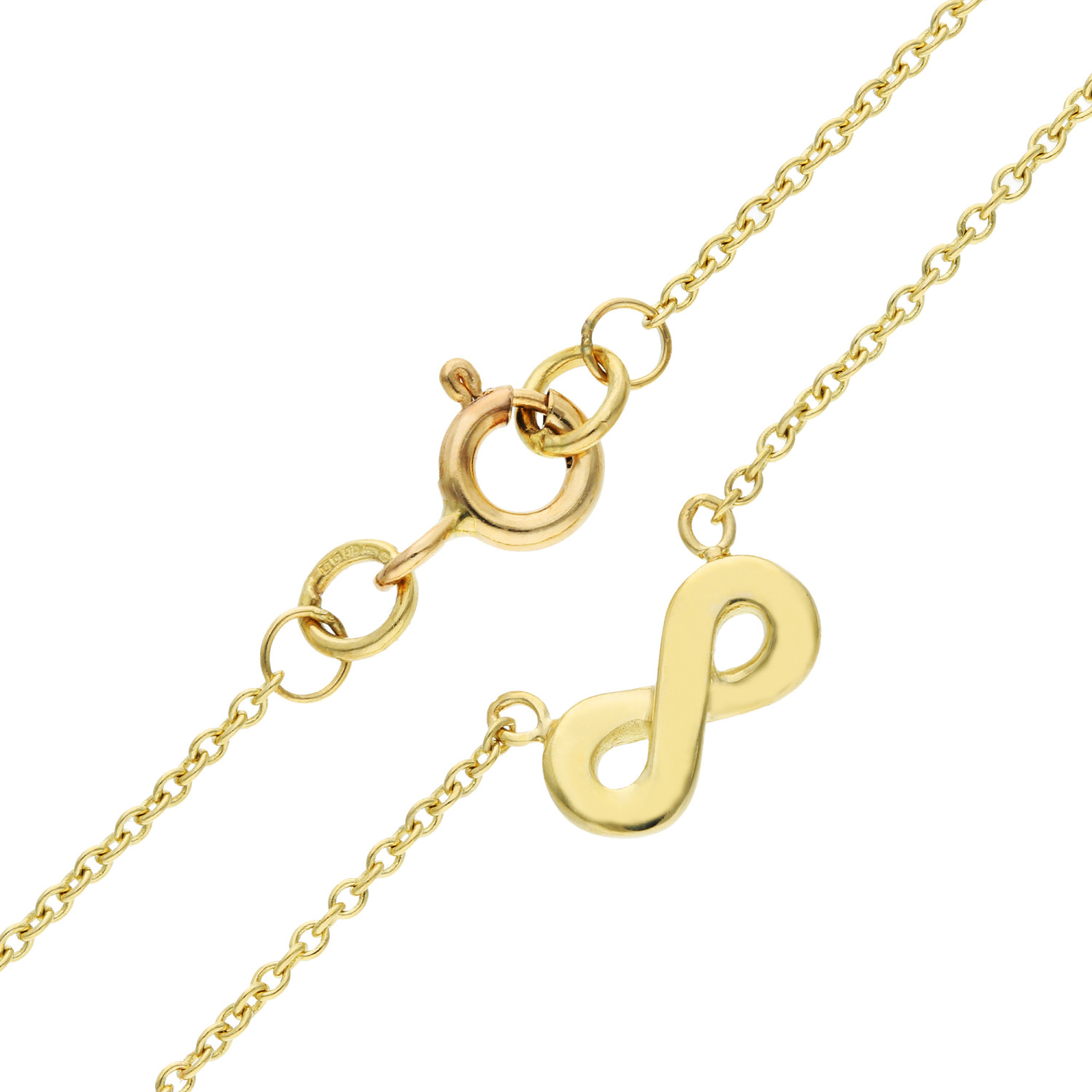 Introducing our exquisite 9ct Yellow Gold Infinity Necklace, a timeless symbol of endless love and continuity. This elegant piece features a beautifully crafted infinity symbol, seamlessly integrated with an integral chain that enhances its sleek design. The polished yellow gold construction radiates warmth and luxury, making it a perfect accessory for both day and evening wear. Whether you are looking for a meaningful gift or a special addition to your own jewellery collection, this infinity necklace is sure to impress with its symbolism and stylish appearance. It's an ideal choice for celebrating anniversaries, milestones, or simply expressing everlasting affection.