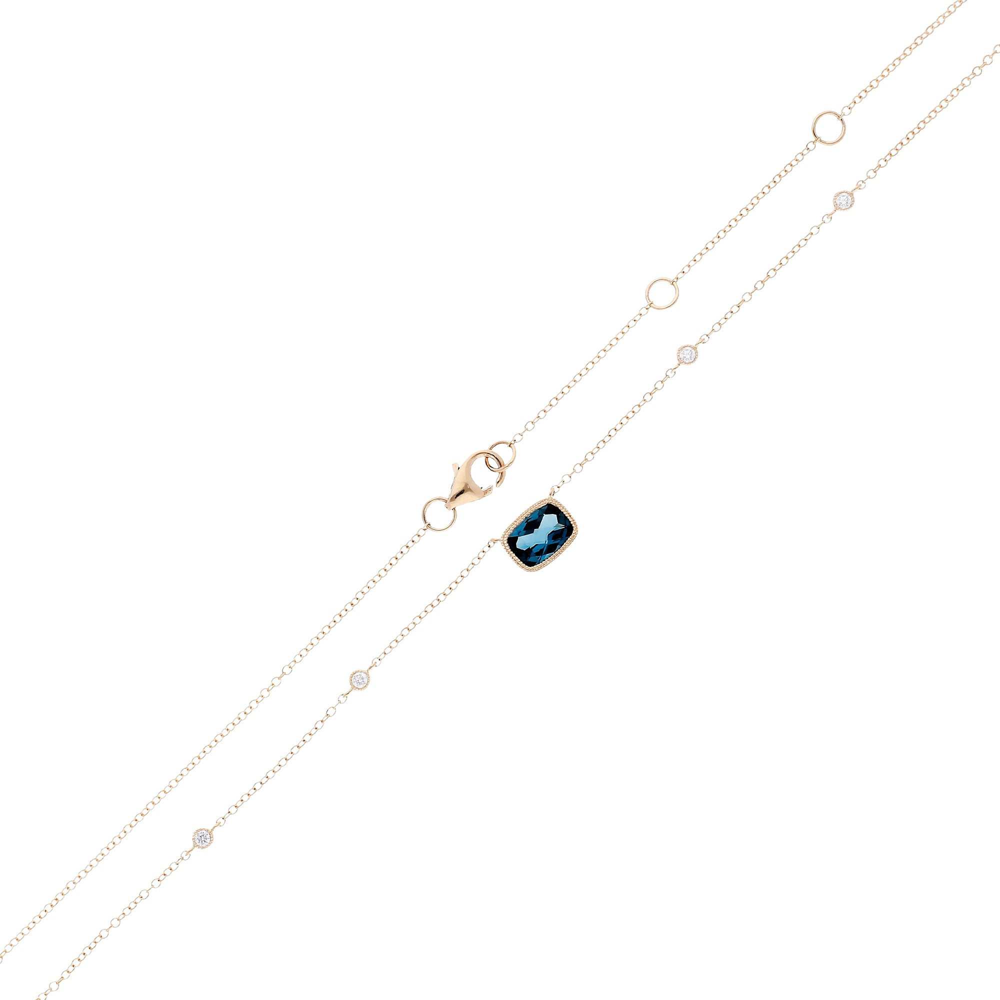 9ct Yellow Gold Diamond &1.00ct London Blue Topaz Necklace