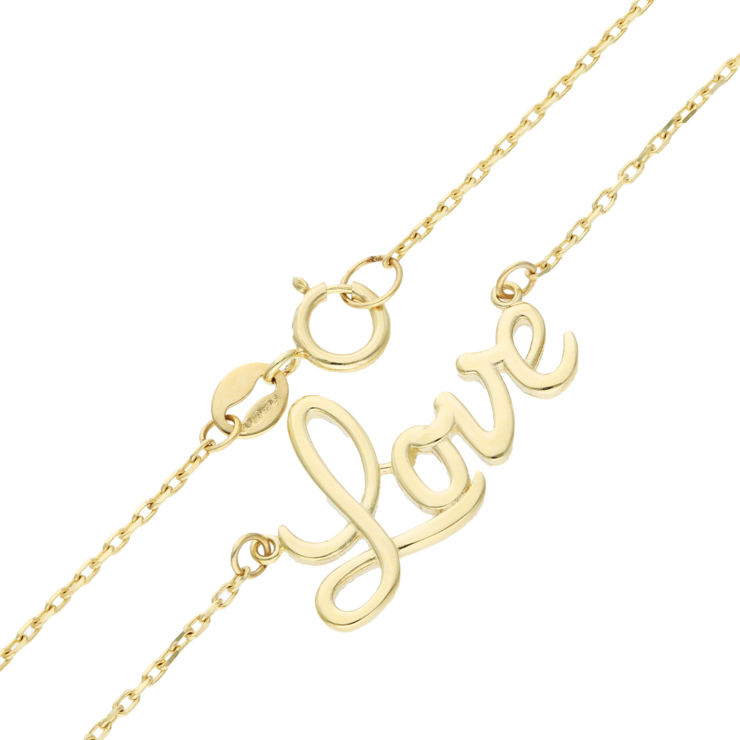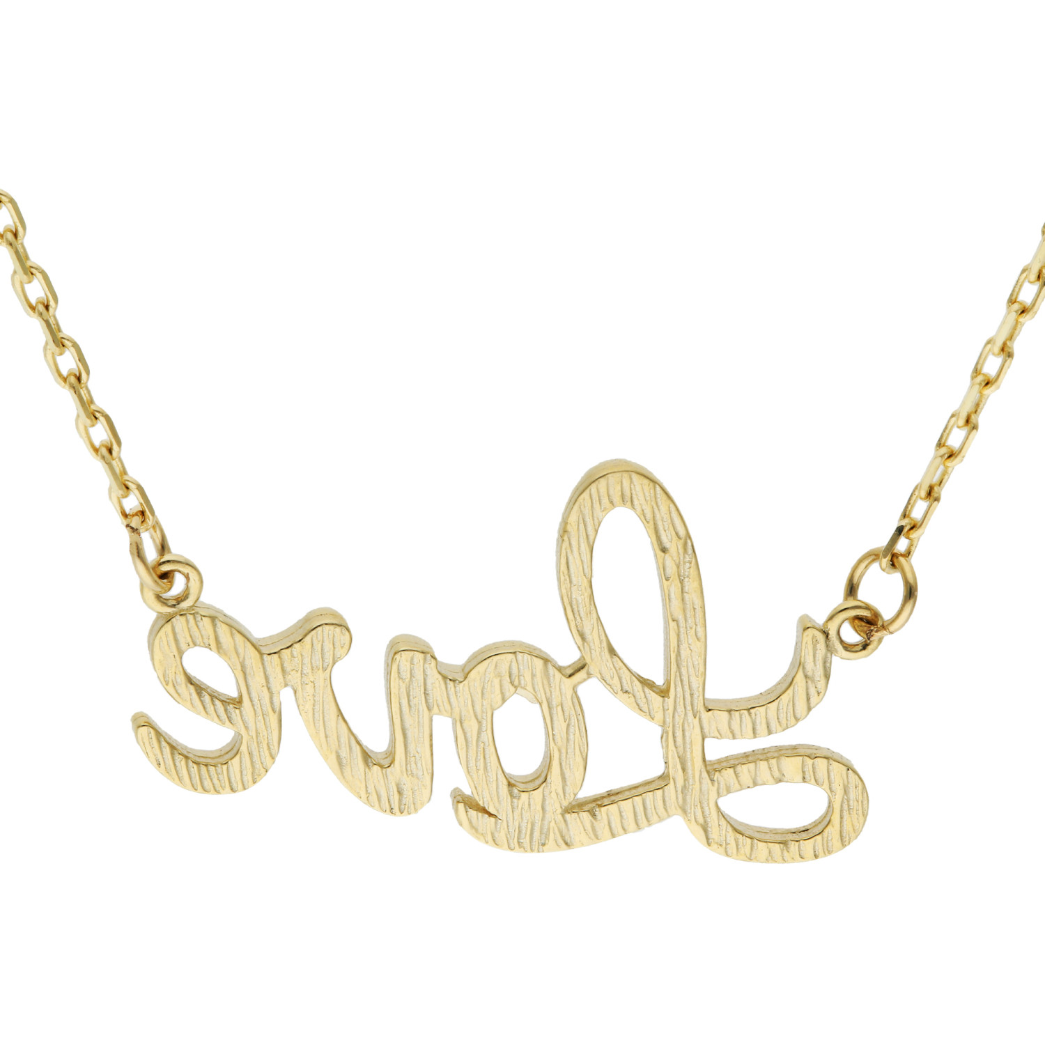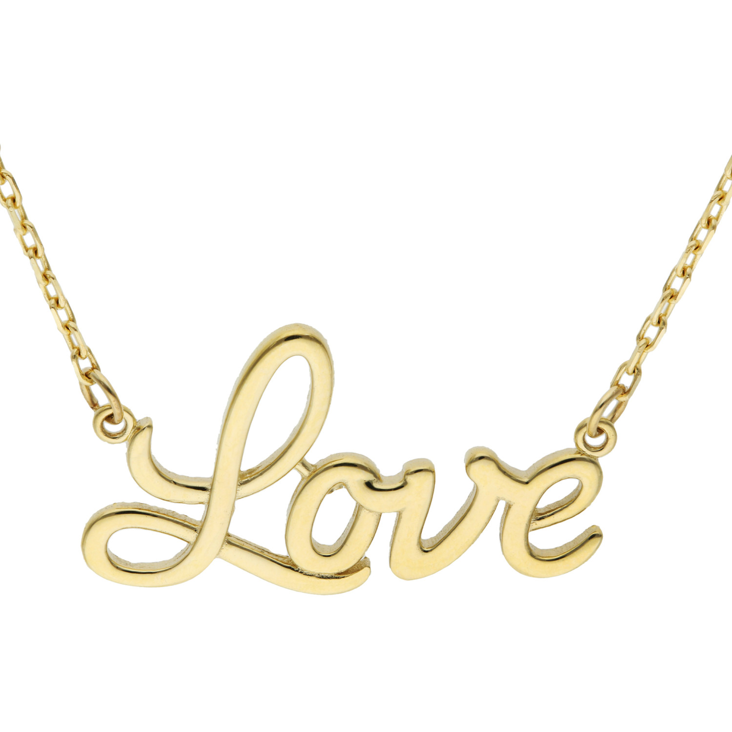 Celebrate the essence of romance with our striking 9ct Yellow Gold Love Necklace. Expertly crafted, this piece features the word "Love" in elegant script, fashioned from the finest 9ct yellow gold. This charming pendant hangs gracefully from an integral gold chain, creating a seamless and stylish look. Its timeless design ensures that this necklace is not only a perfect gift for someone special but also a versatile addition to any jewellery collection. Whether it’s a casual day out or a formal event, this necklace adds a touch of class and sentiment to any outfit. Embrace the luxury of pure gold and the beauty of a simple declaration of love with this exquisite piece.