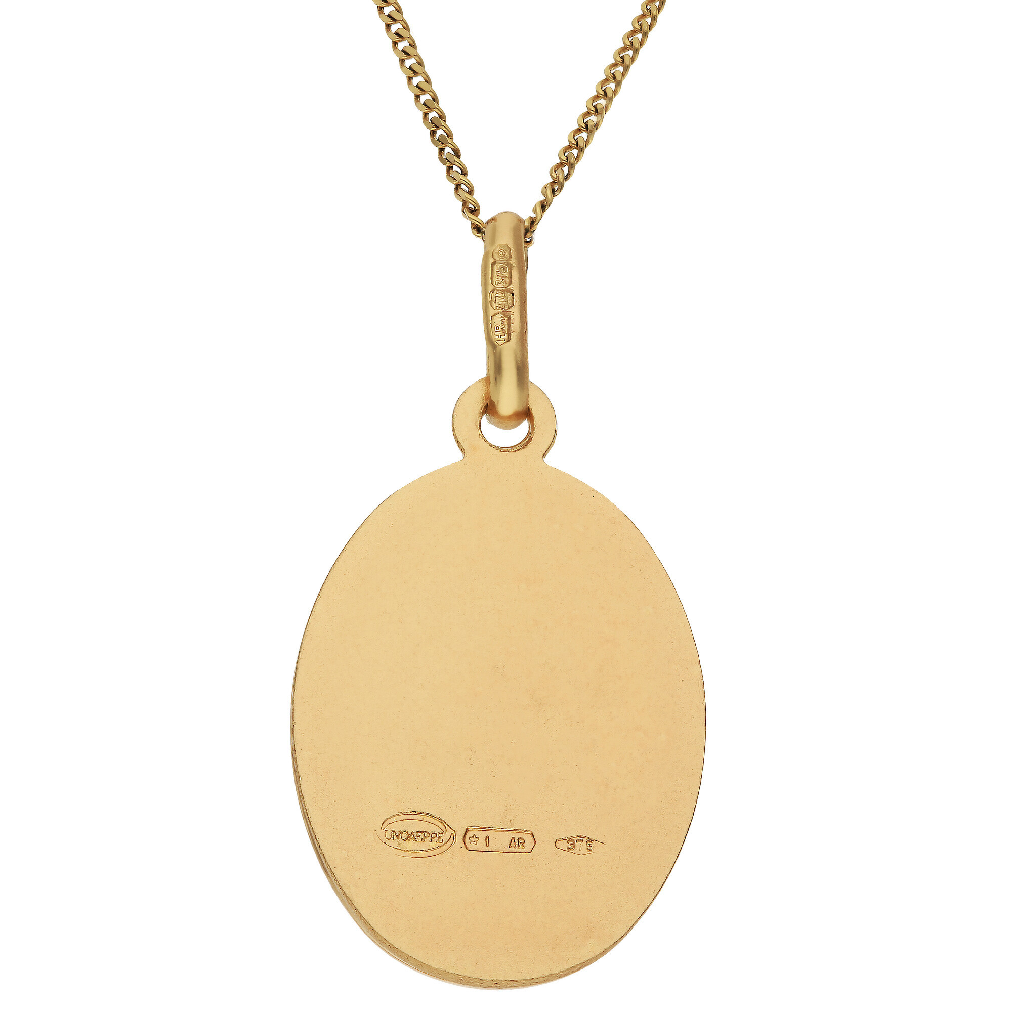 Discover the protective charm of our 9ct Yellow Gold St Christopher Pendant, a symbol of safe travel and guidance. This pendant features an oval design, beautifully depicting St Christopher, the patron saint of travellers, making it an ideal gift for someone embarking on a journey or a thoughtful keepsake for those who value spiritual symbols. The back of the pendant is left plain, providing a perfect space for personal engraving to add a bespoke touch. It comes complete with a chain, and you can select the desired length from the dropdown menu, ensuring it suits your style preferences perfectly. Whether worn daily or on special occasions, this St Christopher pendant serves as a meaningful and protective talisman.