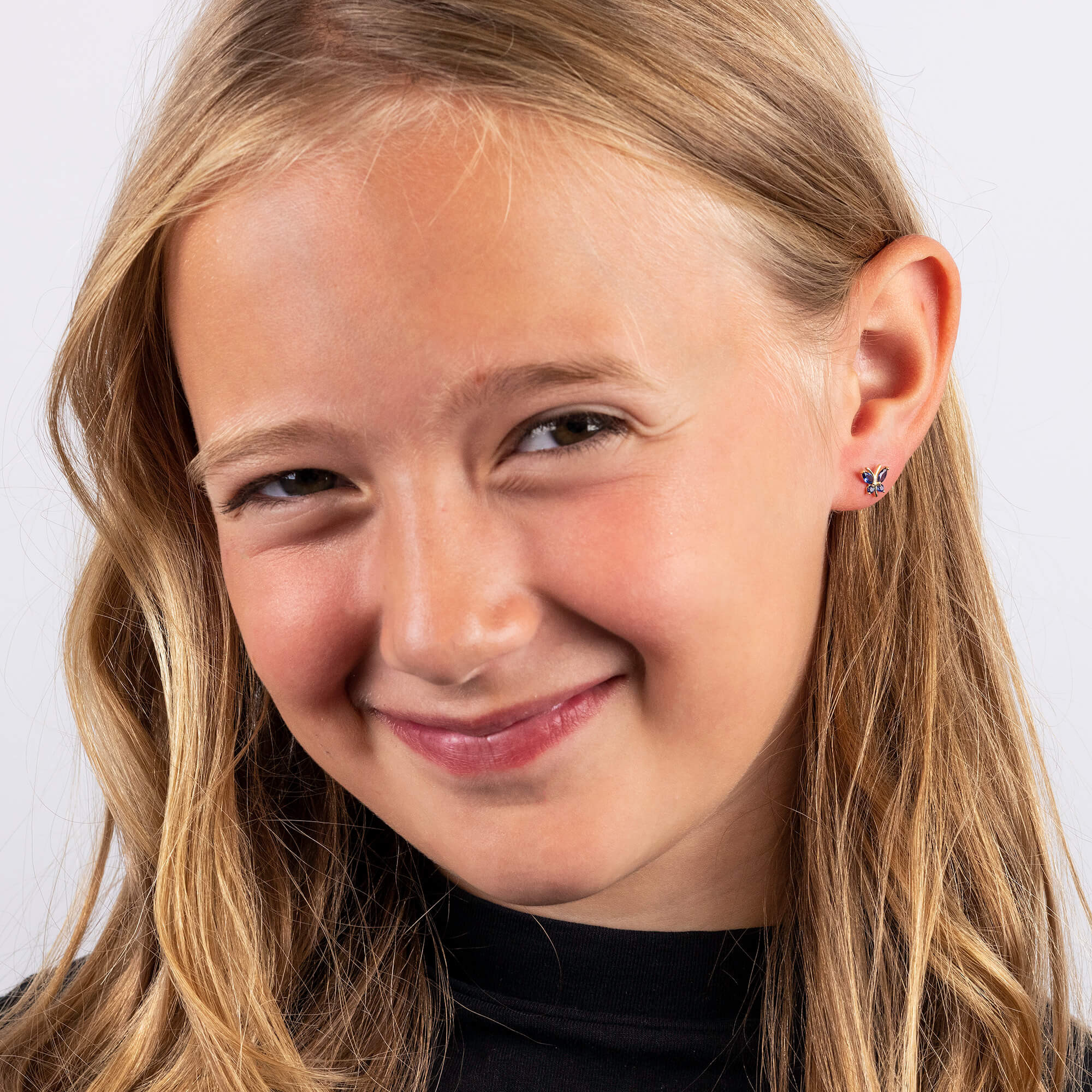 The captivating butterfly design adds a touch of whimsy and charm, perfect for adding a splash of colour to any outfit. Secure posts and butterfly backs ensure a comfortable and reliable fit, making them ideal for everyday wear or special occasions.