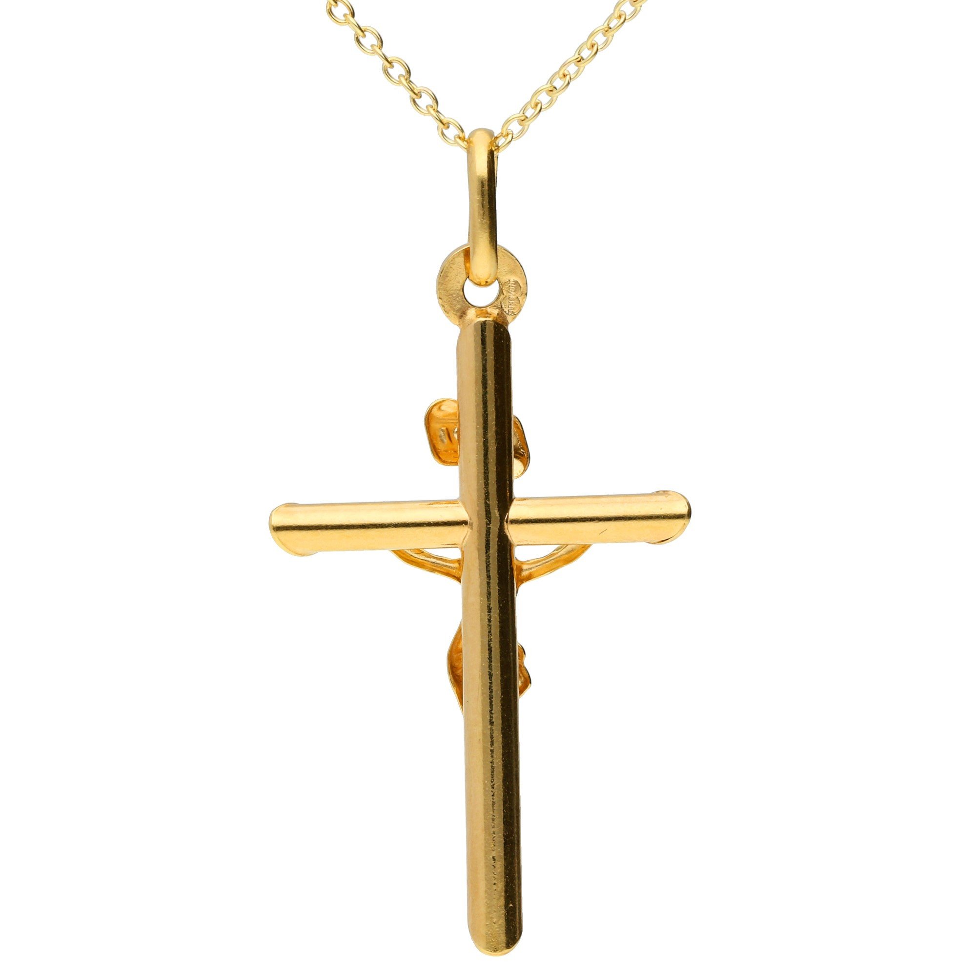 Celebrate your faith with this elegant 9ct Yellow Gold Crucifix Pendant, a timeless symbol of spirituality and devotion. This beautifully crafted pendant features a classic crucifix design, finely detailed and suspended from a round polished bail for a secure fit. Each pendant comes with a chain, offering you the option to select the perfect length from our dropdown menu to suit your style preferences. Ideal for daily wear or as a special gift on religious occasions, this crucifix pendant serves as a meaningful piece of jewellery that carries deep personal significance.