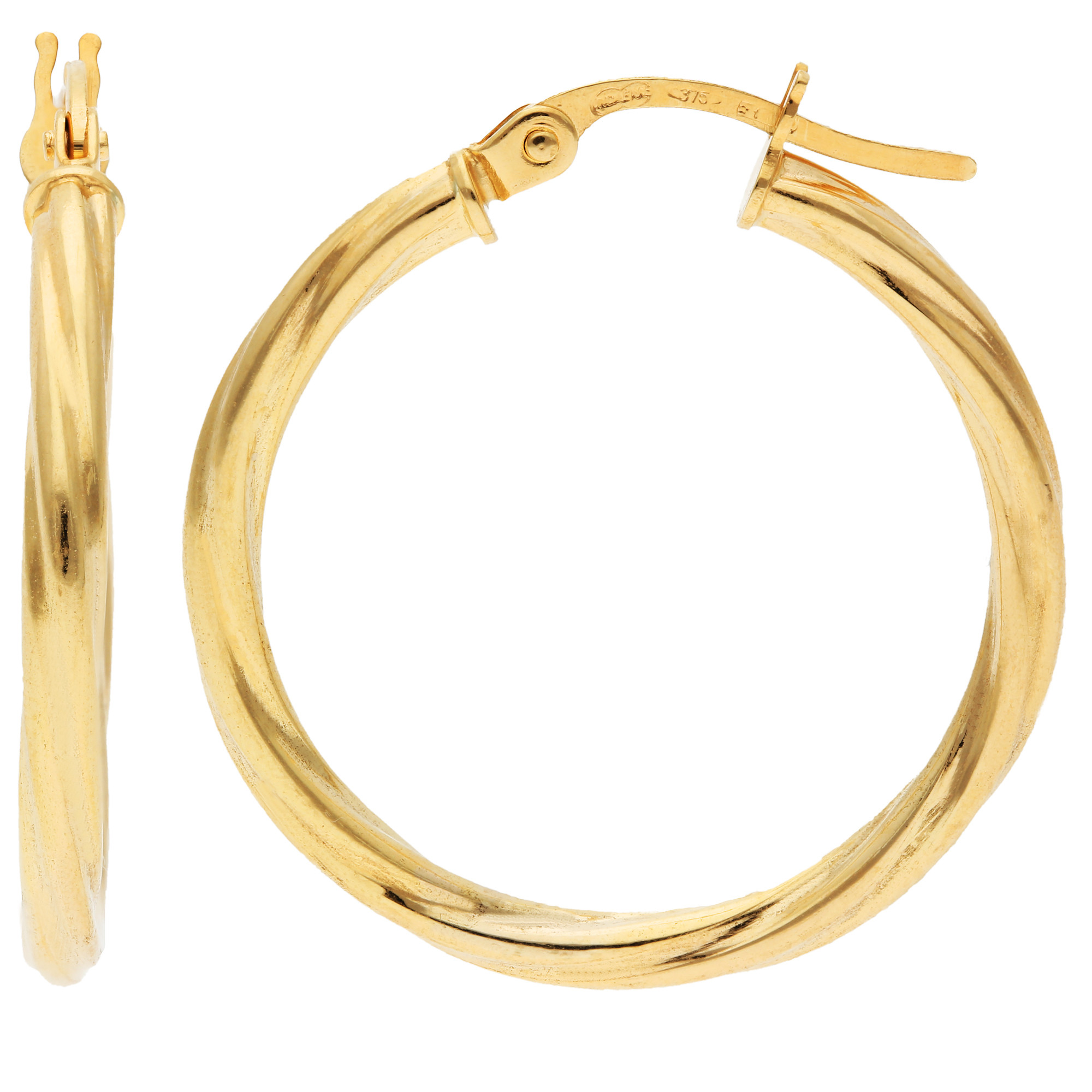 "Step into a world of timeless elegance with our 9ct Yellow Gold 23mm Twisted Hoop Earrings. These exquisite earrings feature a unique twist design, giving a contemporary spin to the classic hoop. Crafted in luxurious 9-carat yellow gold, they exude warmth and radiance, complementing any skin tone. The twisted pattern catches the light in a mesmerizing way, creating an enchanting sparkle with every movement. At 23mm, these hoops are the perfect size to make a subtle statement, versatile enough for both day-to-day wear and special occasions. The design of these earrings is not only beautiful but also practical, with a secure closure ensuring they stay in place. Whether you're dressing up for an evening out or adding a touch of sophistication to your everyday attire, these Twisted Hoop Earrings are sure to enhance your look with their elegant and modern charm."