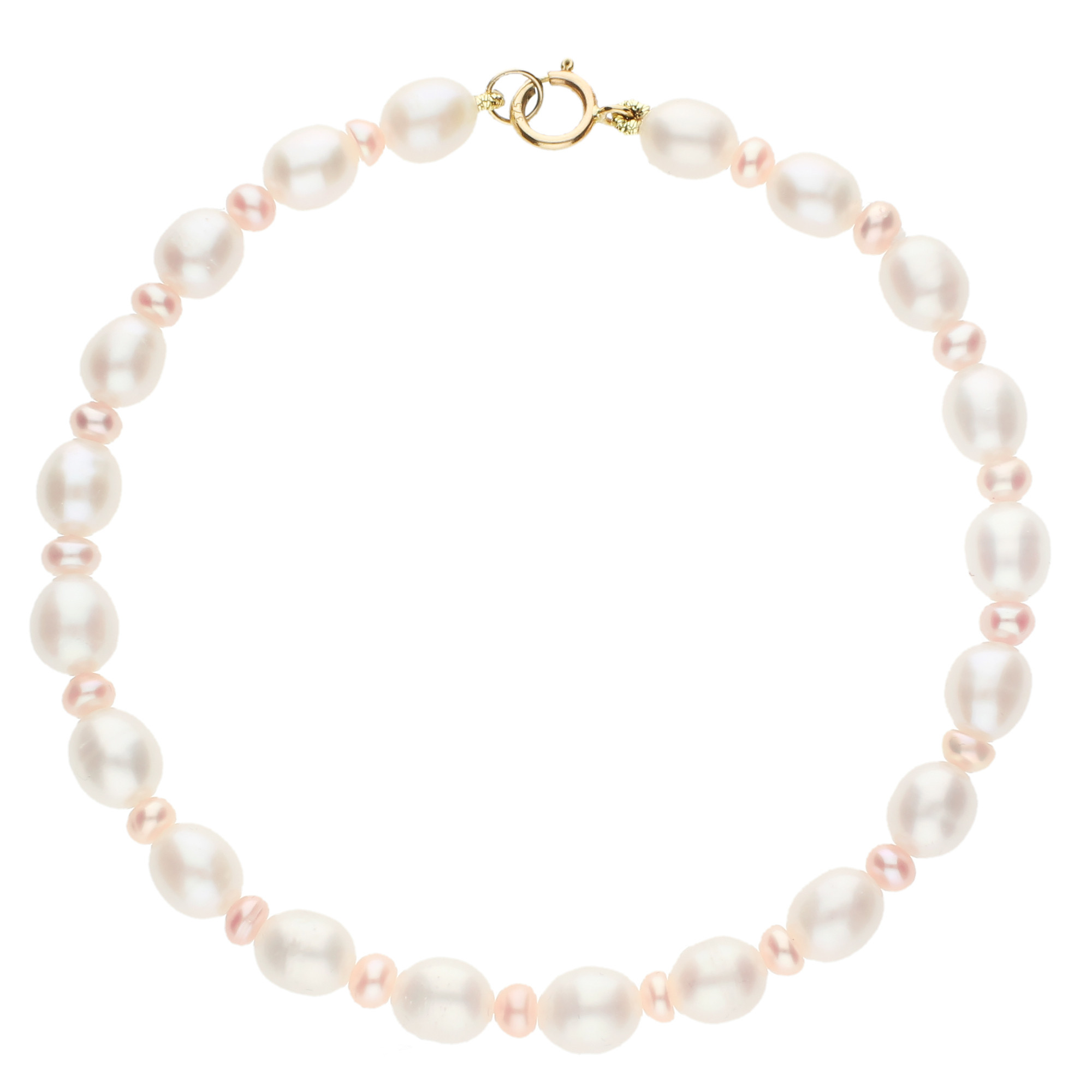 Elevate your jewellery collection with our exquisite 9ct Yellow Gold Pearl Bracelet, a stunning piece that features an elegant combination of cultured white rice pearls and smaller peach pearls. Strung together meticulously, this bracelet showcases a seamless blend of colours that adds a sophisticated touch to any outfit. The high-quality yellow gold clasp not only secures the bracelet comfortably around your wrist but also complements the luminous pearls, enhancing their natural beauty. This bracelet is perfect for anyone looking to add a touch of luxury and timeless style to their accessory collection. It makes an exceptional gift for special occasions like weddings, anniversaries, or a thoughtful birthday present.