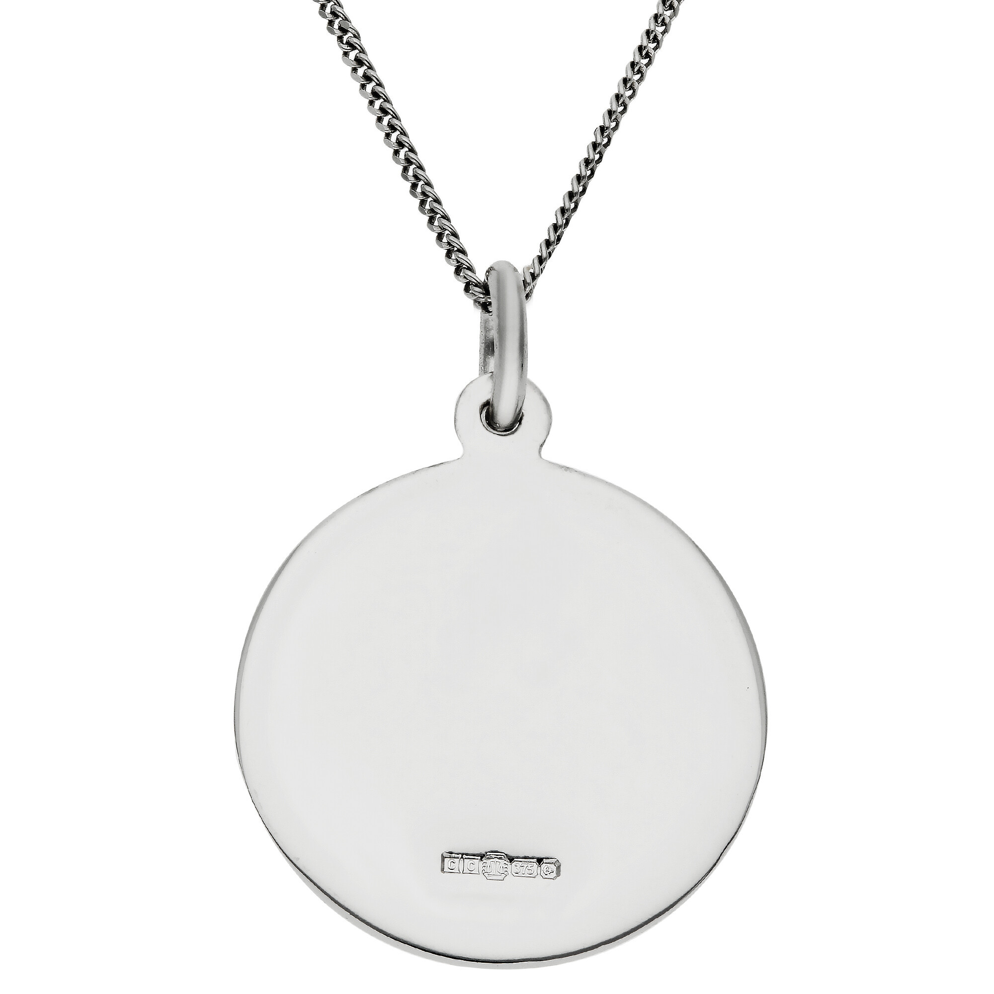 Carry a timeless symbol of protection and guidance with this elegant 9ct White Gold St Christopher Pendant. Crafted from sleek white gold, this pendant features a beautifully detailed image of St Christopher, the patron saint of travellers. The reverse side of the pendant is plain, providing the perfect surface for engraving a personal message or special date, making it a meaningful keepsake.