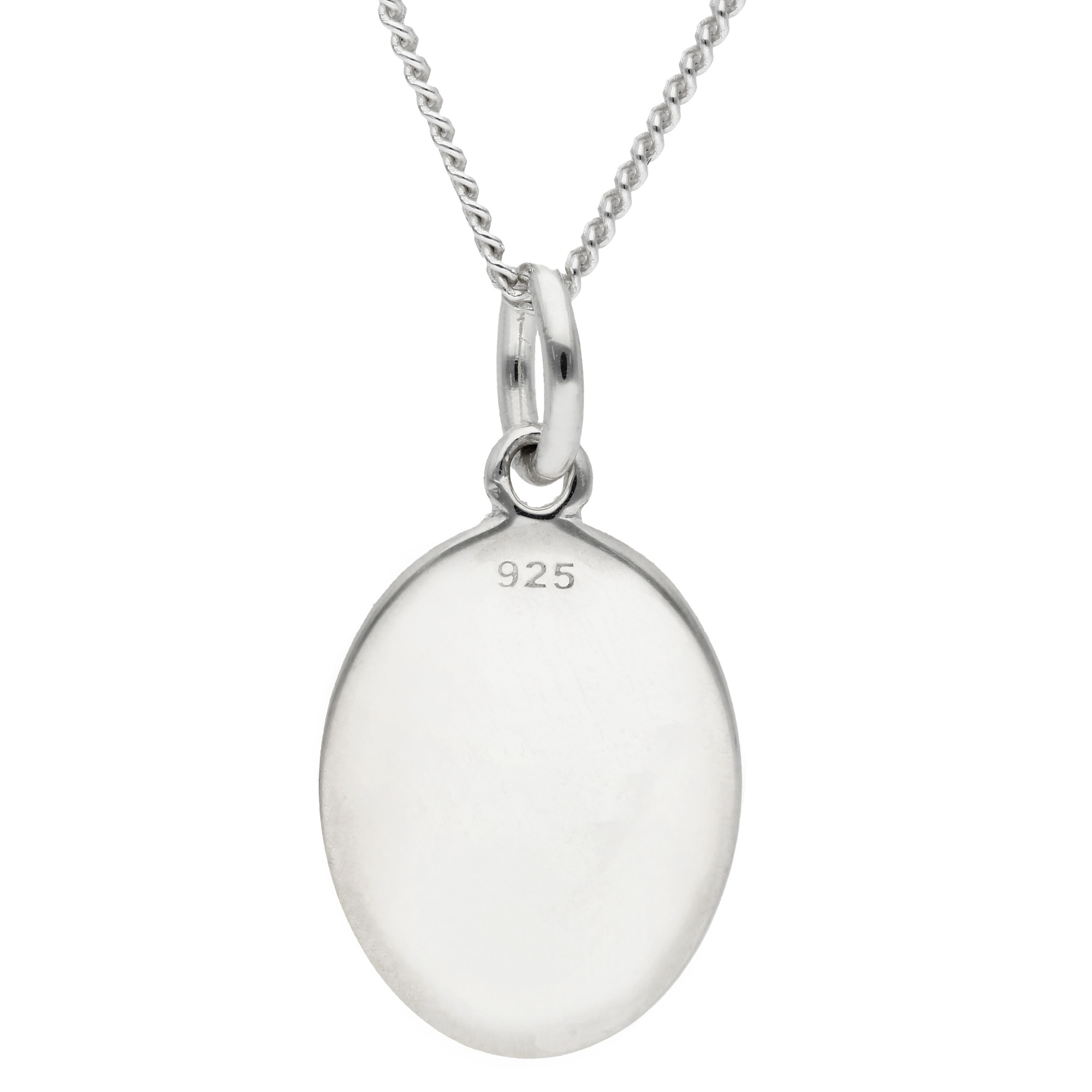 This Children's Sterling Silver Cross Pendant is a timeless symbol of faith and elegance, perfect for marking special moments. Crafted from polished sterling silver, the oval pendant features an embossed cross on the front, showcasing intricate detailing that makes it both meaningful and stylish. The back is left plain, allowing for personalised engraving to commemorate a name, date, or heartfelt message.