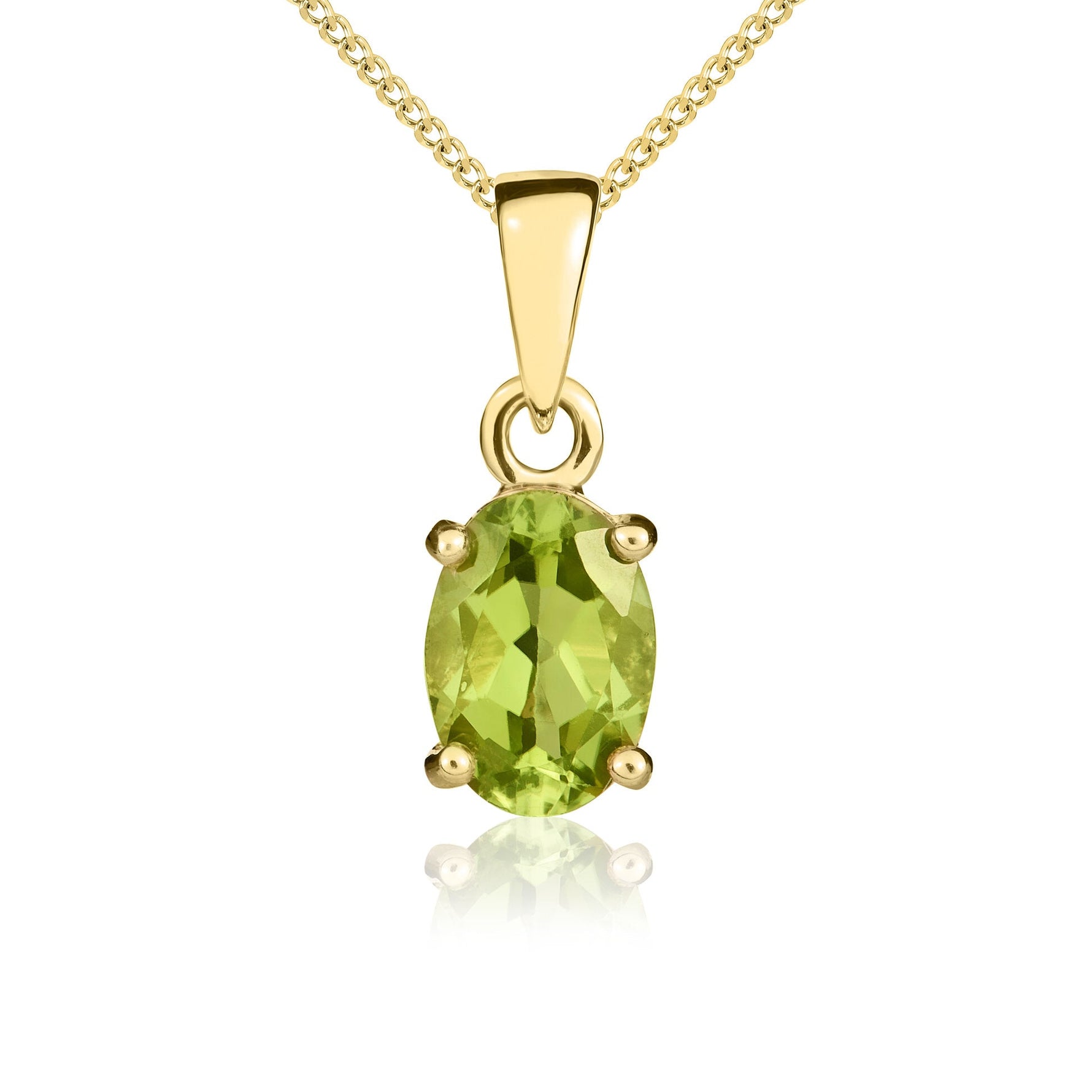 9CT Yellow Gold Oval Peridot Claw Pendant 7x5mm