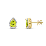 9CT Yellow Gold Pear Shaped Peridot & Diamond Cluster Earrings - 7x5mm