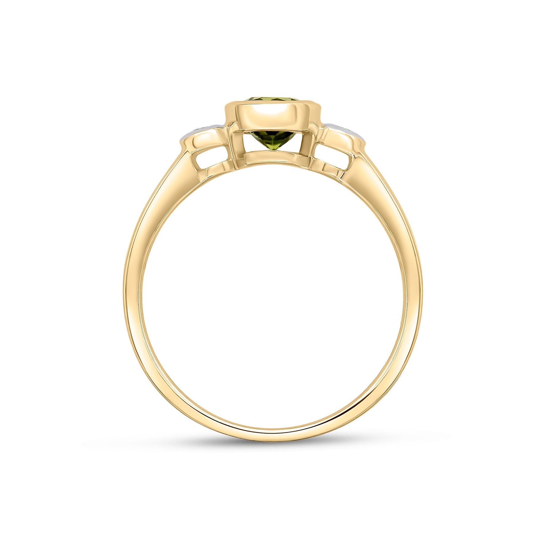 9CT Yellow Gold Round Peridot & Diamond Rubover Three Stone Ring 5mm