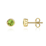 9ct Yellow Gold Round Peridot Rubover Stud Earrings — 4mm