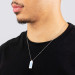The pendant is suspended from a sturdy yet stylish adjustable trace chain, allowing for a length of 20 to 21 inches. This ensures a comfortable and tailored fit that complements both casual and formal outfits. With its bold and contemporary aesthetic, this stainless steel pendant is a standout piece that embodies strength and individuality.