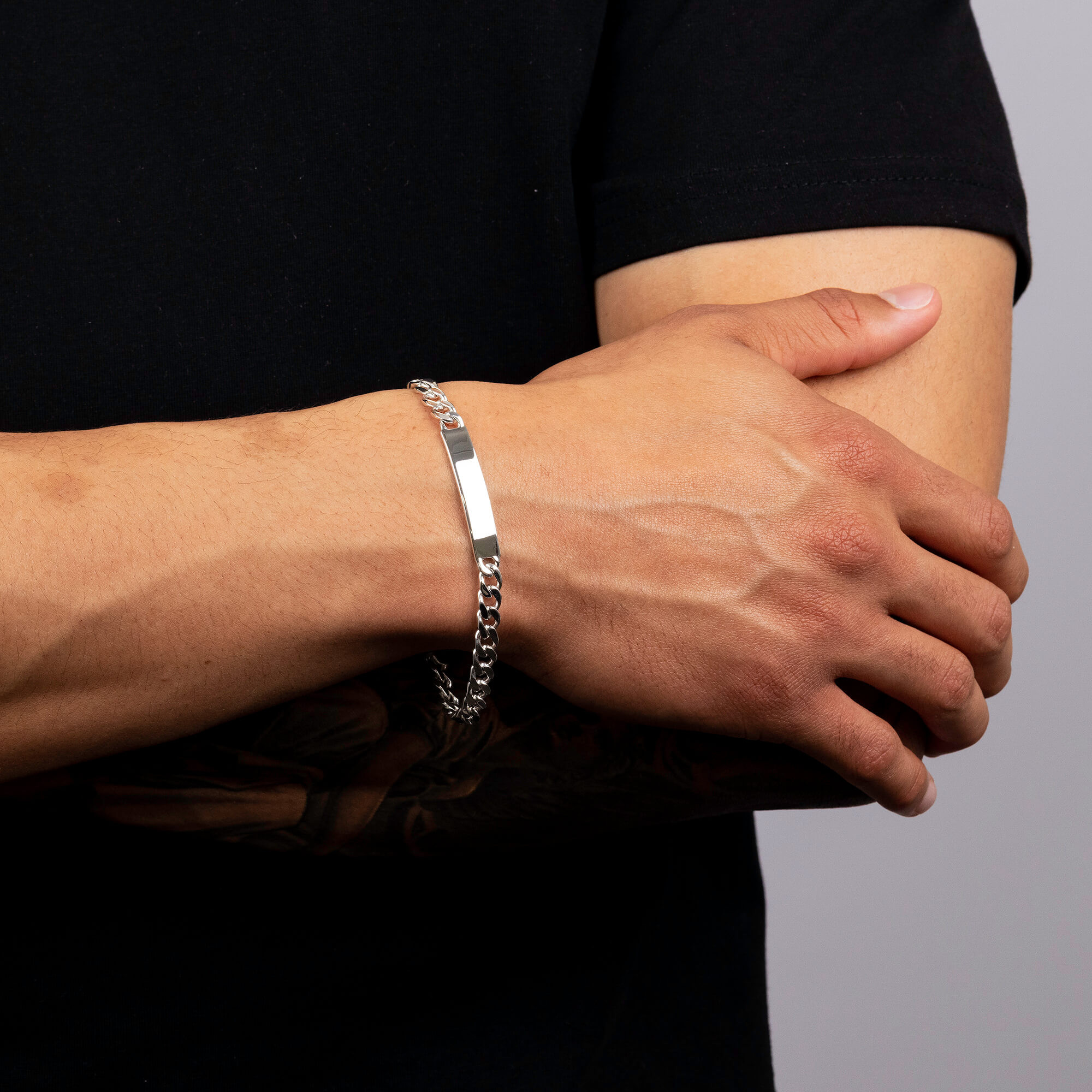 A timeless accessory with personal meaning, this men's sterling silver identity bracelet combines classic design with modern elegance. The sleek curb chain flows seamlessly into a smooth, curved bar that offers the perfect space for custom engraving. Whether it is a name, special date or heartfelt message, this bracelet can be personalised to create a piece that is truly unique.