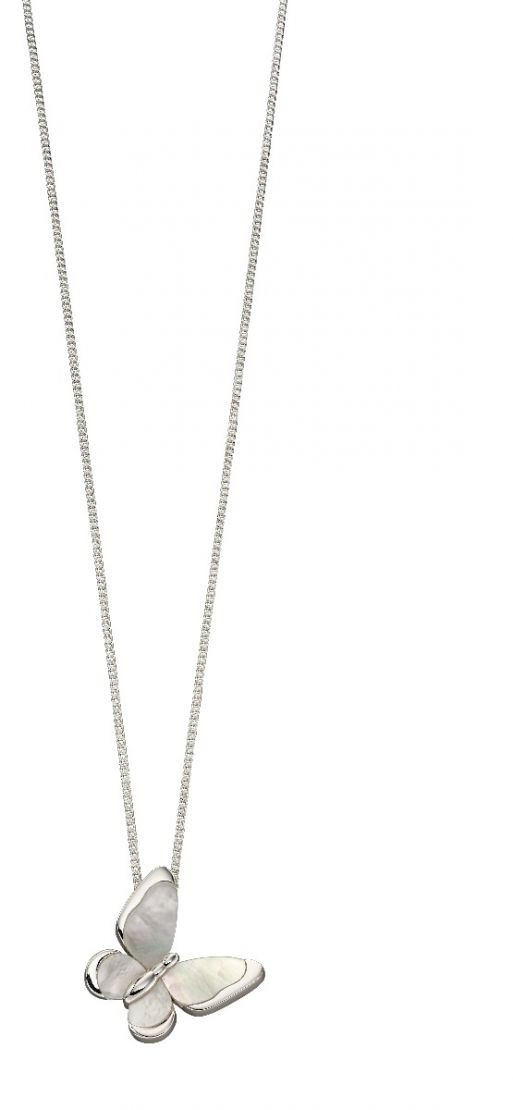 Delicate and graceful, this Sterling Silver Butterfly Pendant is a charming addition to any jewellery collection. Crafted from sterling silver, the pendant features an intricately designed butterfly inlaid with shimmering mother of pearl, creating a radiant and elegant look.