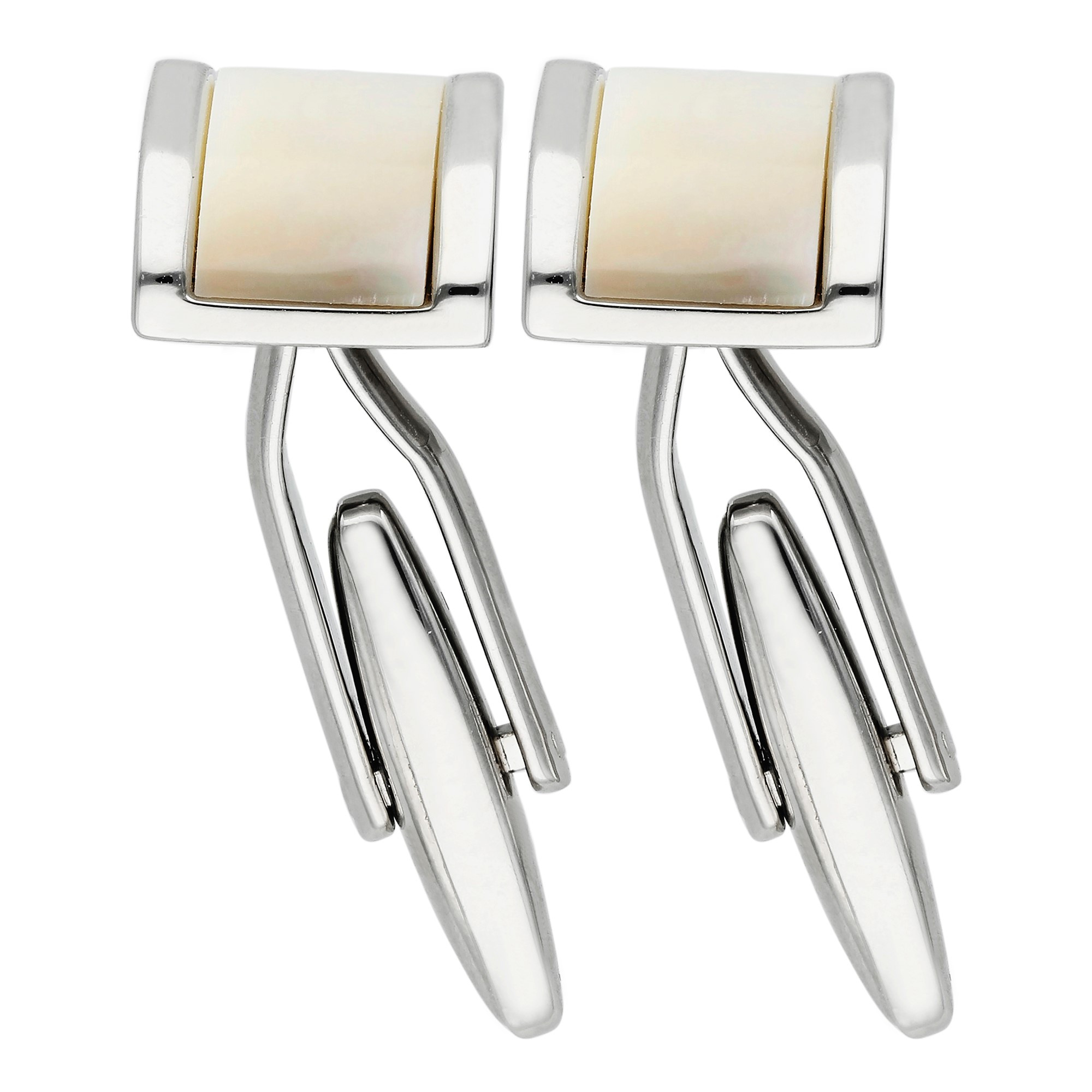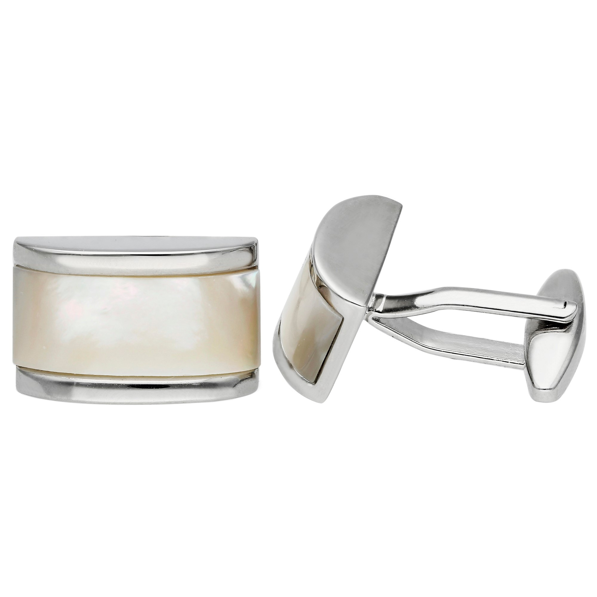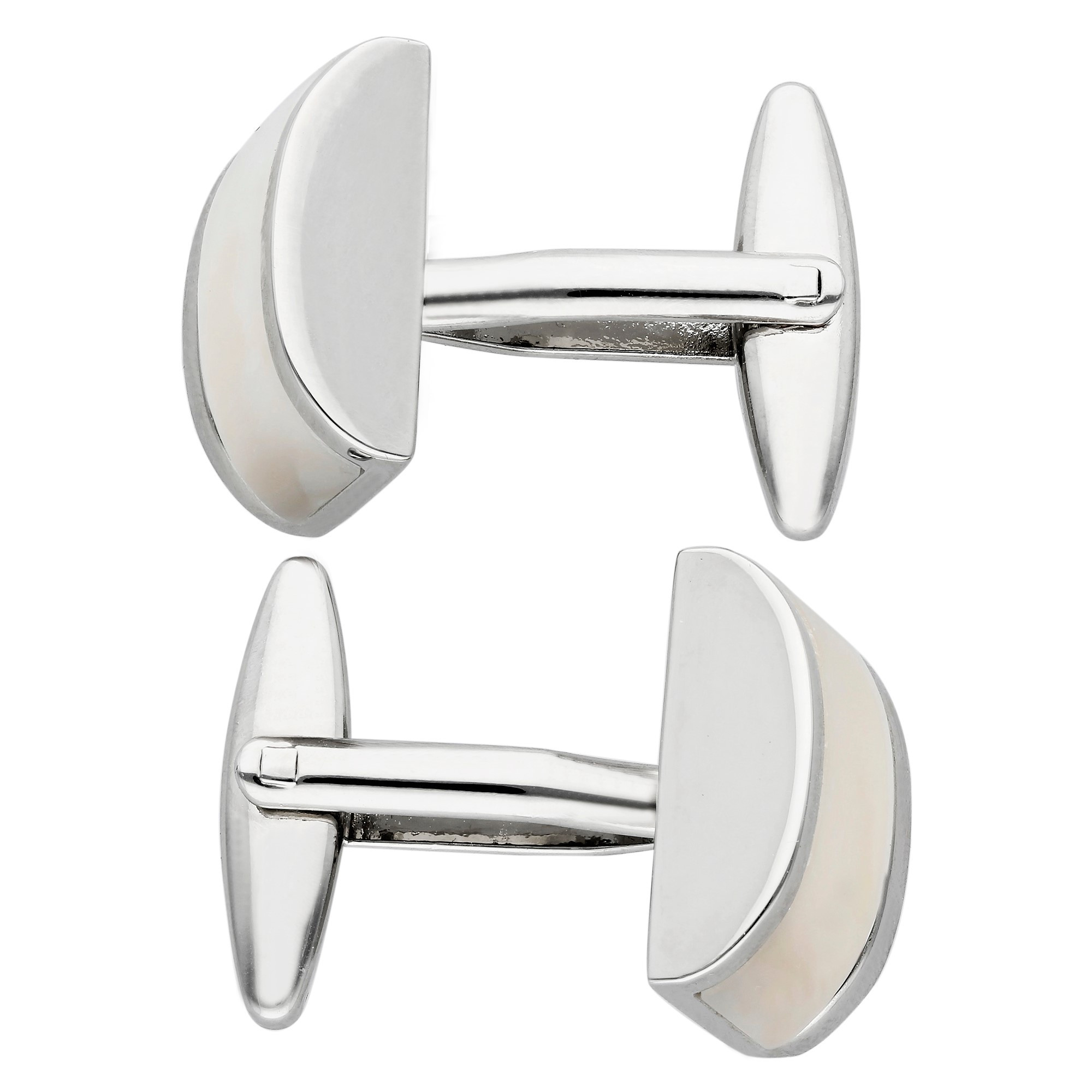 Clean cut Men's cufflinks each accentuated with a chunky inlay of iridescent Mother Of Pearl. A simple and classic addition to any shirt.