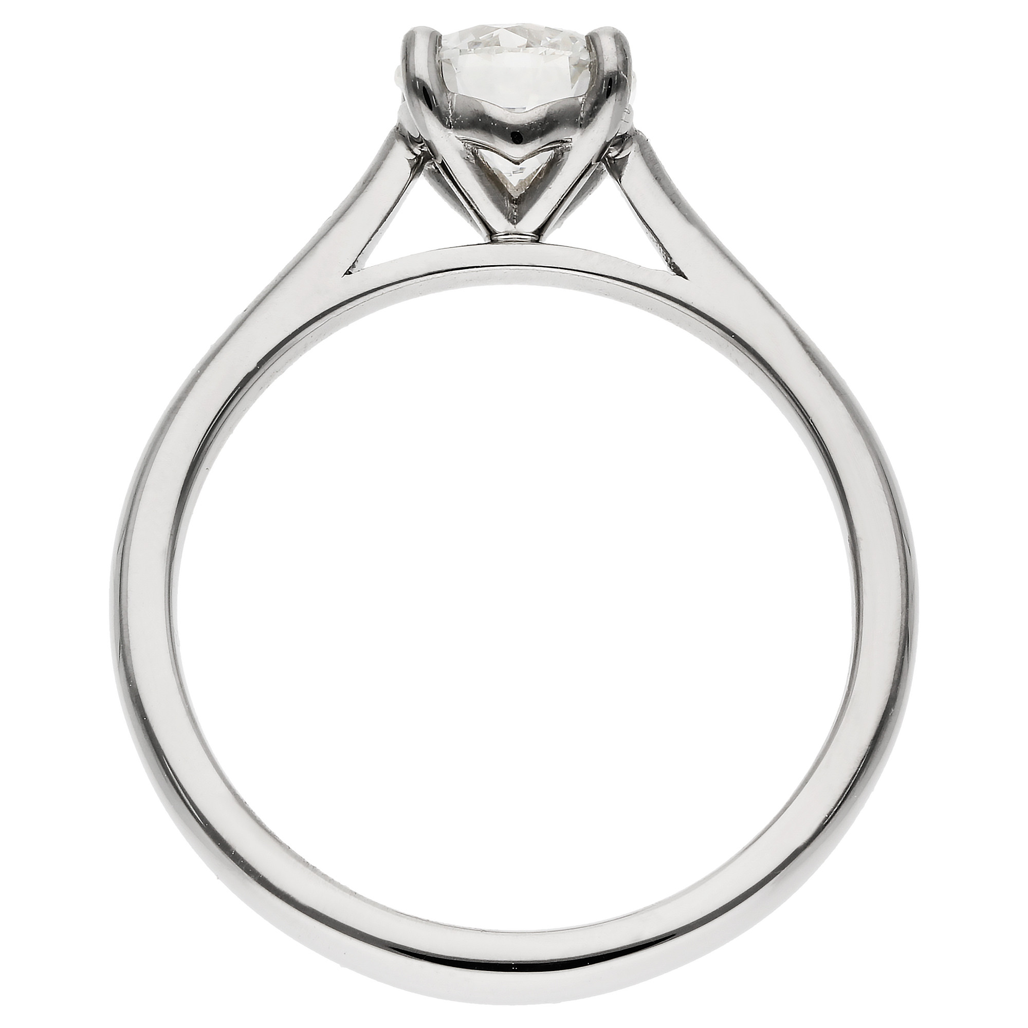 The polished platinum shank provides a sleek and durable foundation, enhanced by gently tapered shoulders that guide the eye towards the central stone. This subtle detail adds refinement while maintaining a clean and graceful silhouette. Designed for lasting comfort and everyday wear, the ring offers a perfect balance of simplicity and sophistication. Ideal for marking one of life’s most important moments, it combines exceptional craftsmanship, enduring style and thoughtful design to create a piece that will be treasured for a lifetime.