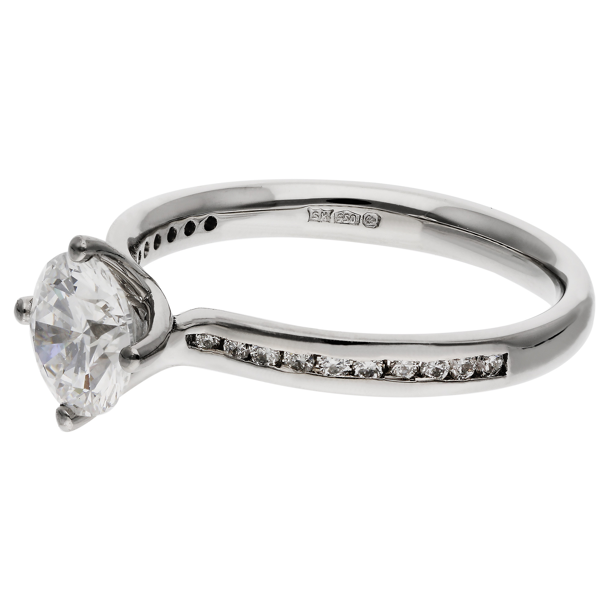 This Platinum 1.00ct Lab Grown Diamond Engagement Ring is a stunning expression of love and commitment. The captivating 1.00 carat round brilliant cut diamond is elegantly claw set in a graceful twist design, symbolising the bond between two lives joined as one. The central diamond sparkles with remarkable fire and brilliance, perfectly complemented by the channel set diamond shoulders that add extra shimmer along the band. Expertly crafted in premium platinum, this ring offers exceptional durability and a radiant lustre that will last a lifetime. Ethically created, the lab grown diamond provides the same beauty, purity, and sparkle as a mined diamond, offering a sustainable and responsible choice for the modern bride. This elegant engagement ring beautifully combines timeless sophistication with contemporary design, making it a truly memorable choice for your proposal or a meaningful gift to celebrate your everlasting love.