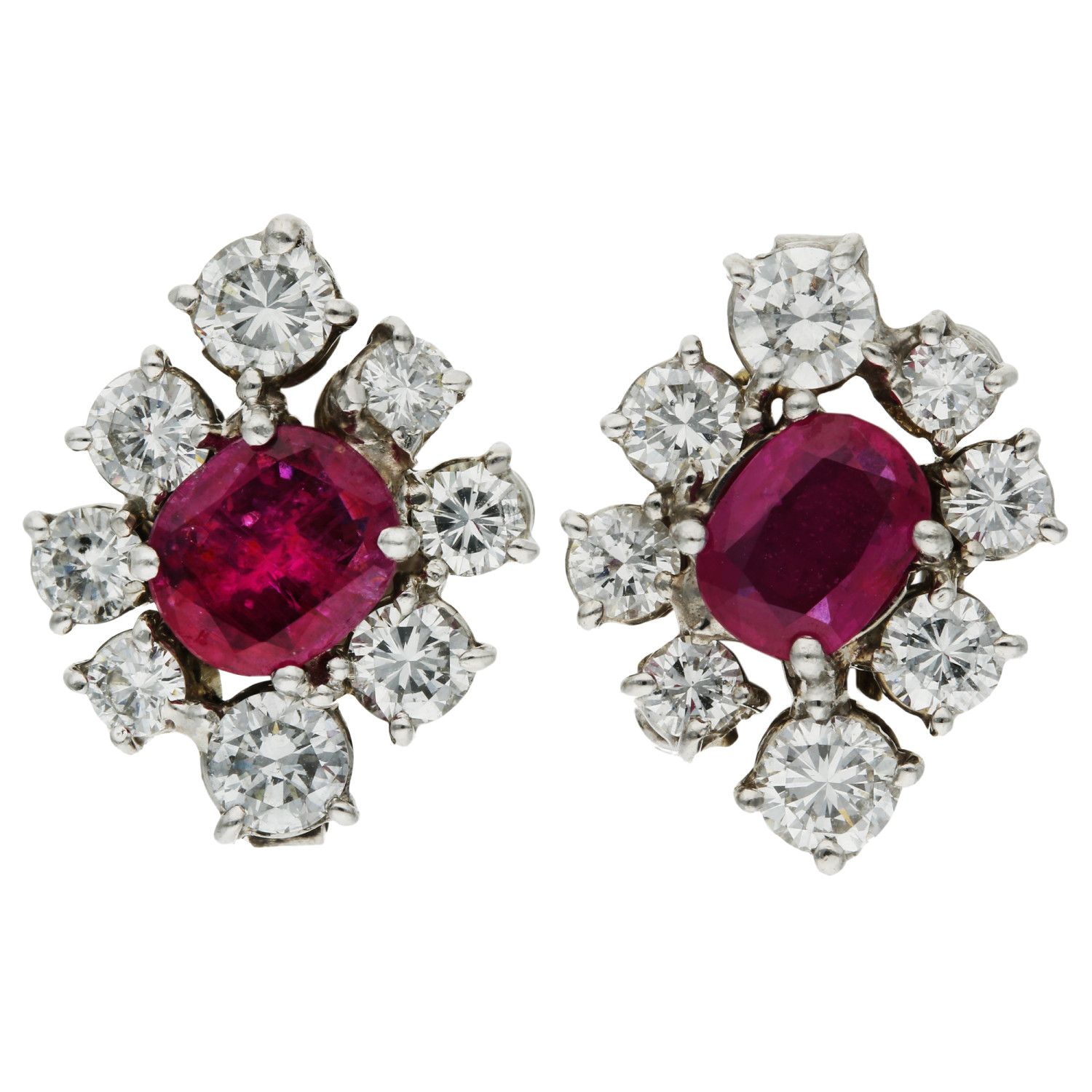 Certified 14ct White Gold 2.4ct Diamond & 1.4ct Ruby Earrings