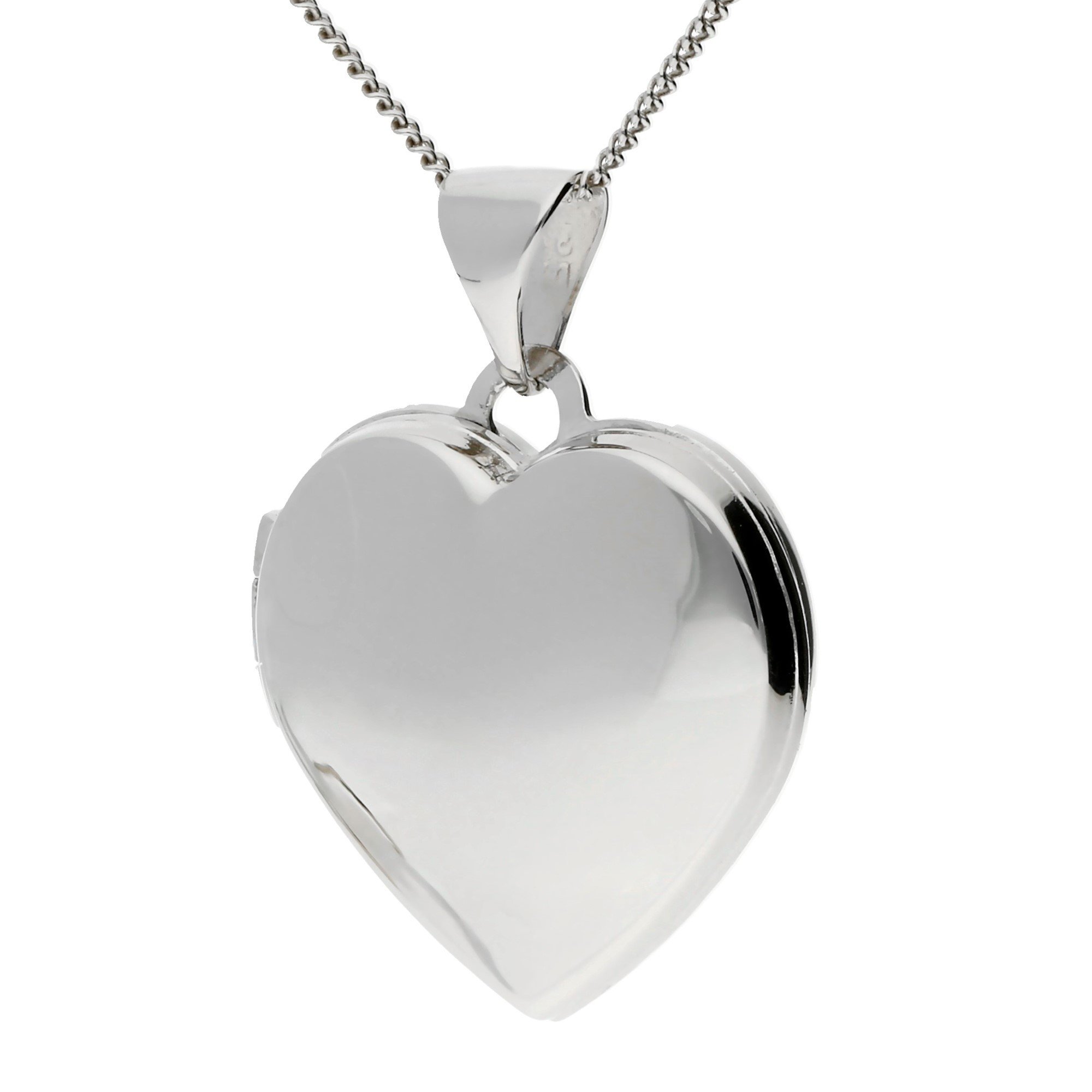 A smooth and shiny silver heart-shaped locket and chain ideal for keeping cherished photo's close to heart. Beautiful as a gift for celebrating new arrivals or a wonderful gift for an 18th birthday. The perfect heart-shaped gift for a valentines love.