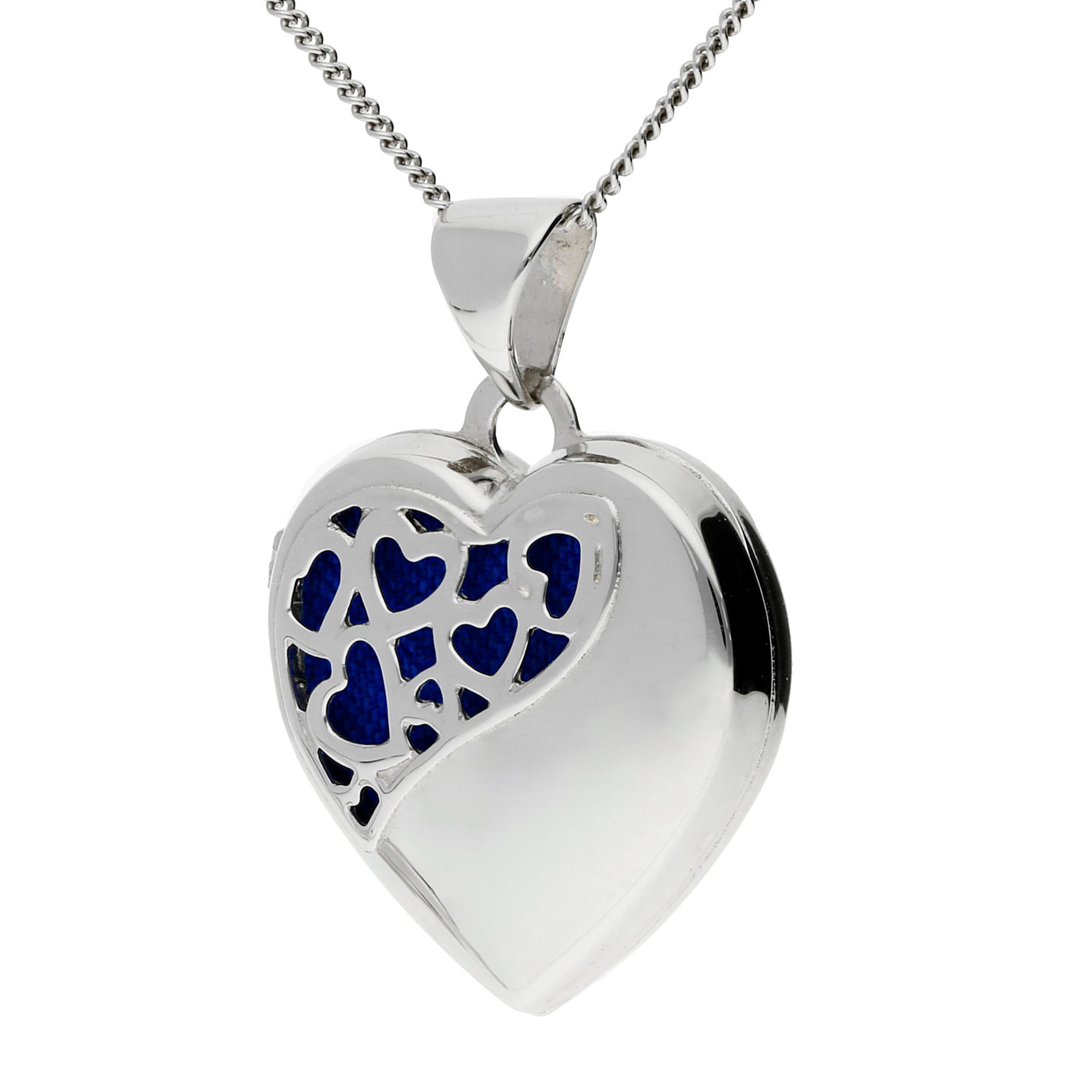 Discover the elegance of our Sterling Silver Heart Locket, a beautifully crafted piece that combines timeless design with personal sentiment. This exquisite locket features a polished finish and showcases an intricate openwork heart pattern on the front, symbolizing love and intricate beauty. The back of the locket remains plain, offering a perfect canvas for personalized engraving, making it an ideal gift for someone special or a meaningful addition to your own collection. Crafted from premium sterling silver, this heart necklace is a versatile accessory, effortlessly complementing any outfit with its subtle sophistication and charm. Whether you're commemorating a special occasion or carrying cherished memories close to your heart, this women's heart necklace, with free UK delivery, is a testament to elegance and heartfelt expression. Shop now and let our Sterling Silver Heart Locket be a cherished symbol of love and timeless style.