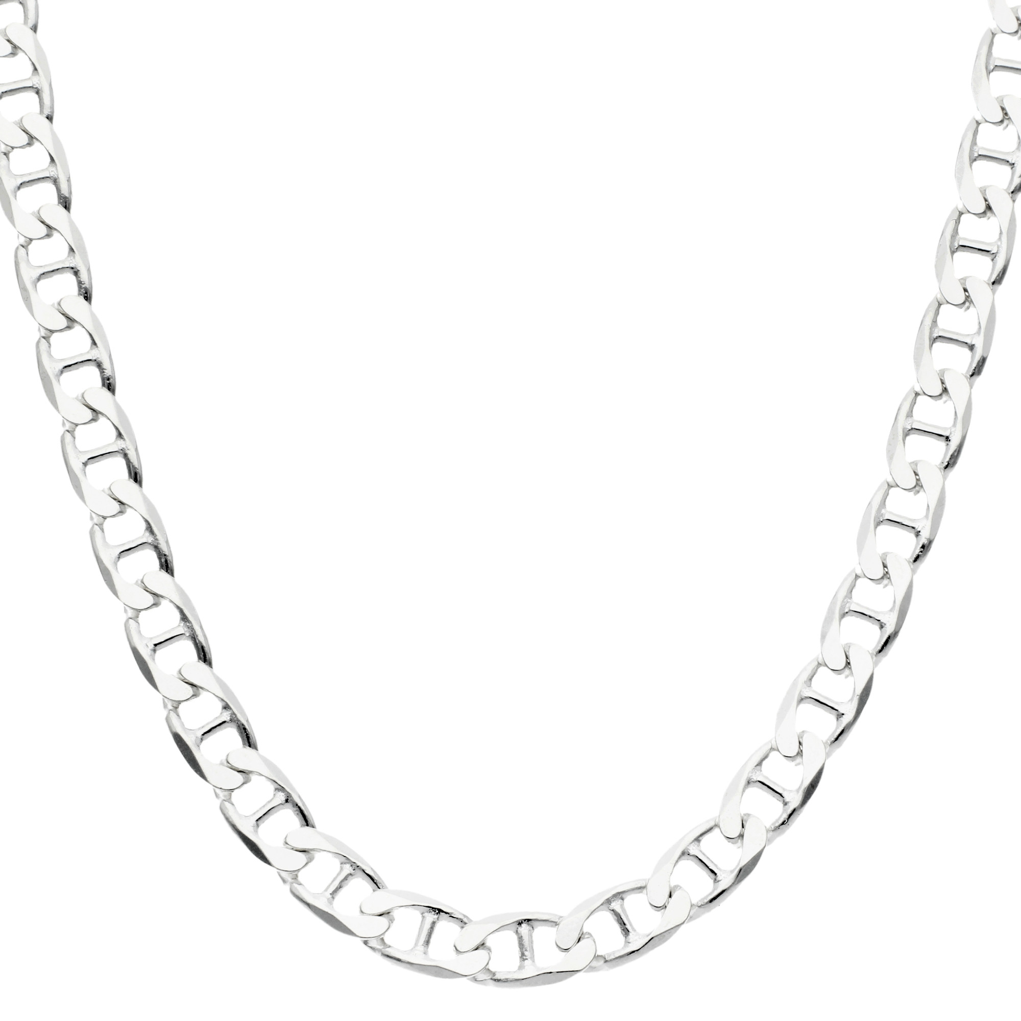 Strong, stylish and full of character, this 6.5mm sterling silver anchor chain is the perfect choice for the modern man. Also known as a mariner chain, this design takes inspiration from nautical links, combining the timeless appeal of a classic curb chain with a bold maritime twist. The solid sterling silver construction gives it a reassuring weight and a polished finish that shines effortlessly.