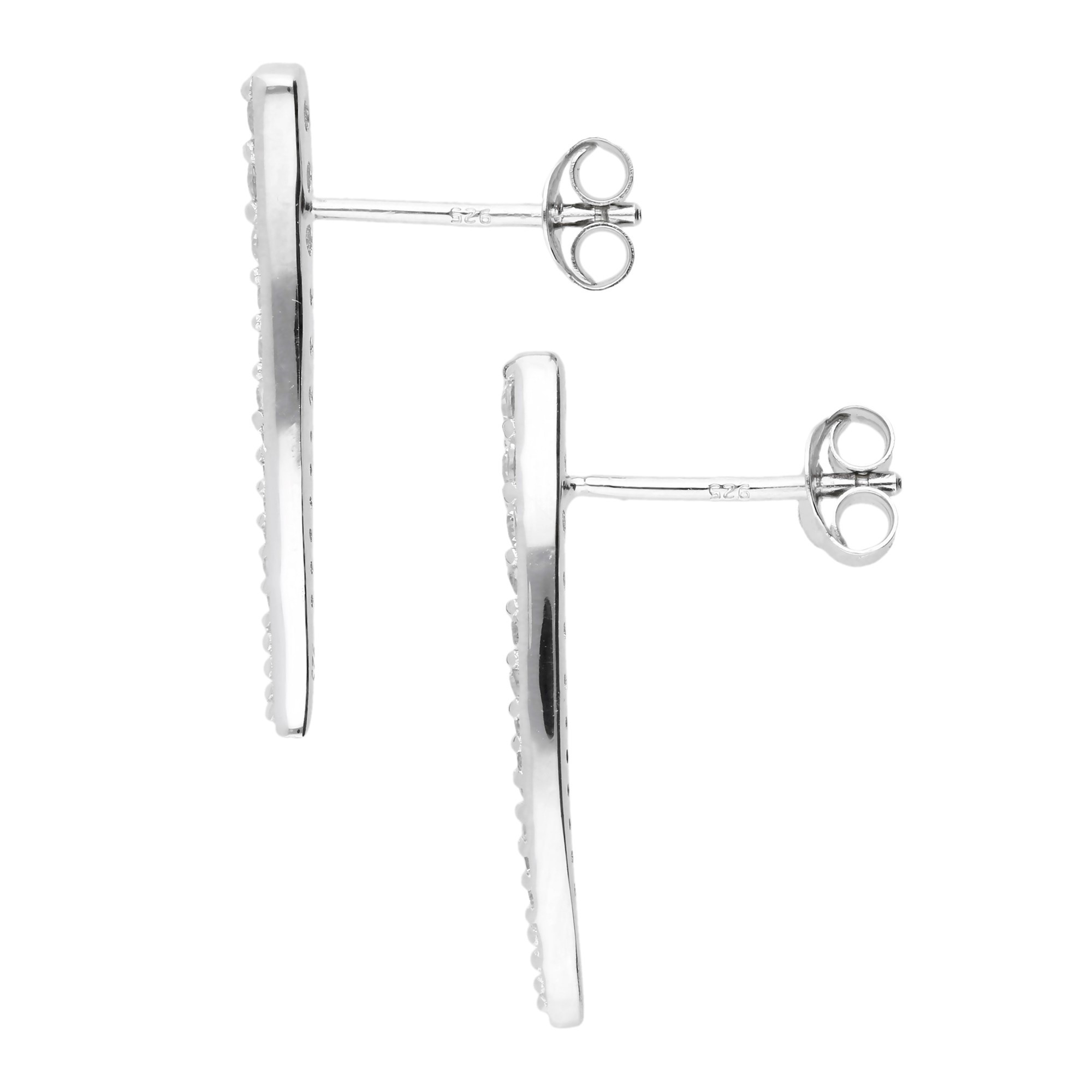 Illuminate your style with our Women's Cubic Zirconia Sterling Silver Earrings, designed to capture the breath taking essence of a comet's trail. Each earring features a long, graduated bar set with sparkling cubic zirconias that cascade beautifully, mirroring the luminous tail of a star across the night sky. Crafted with precision, these earrings come equipped with posts and scroll backs for a secure and comfortable fit. Whether you're dressing up for a special occasion or adding a touch of glamour to your everyday look, these earrings are sure to dazzle and enchant, making them a stunning addition to any jewellery collection.