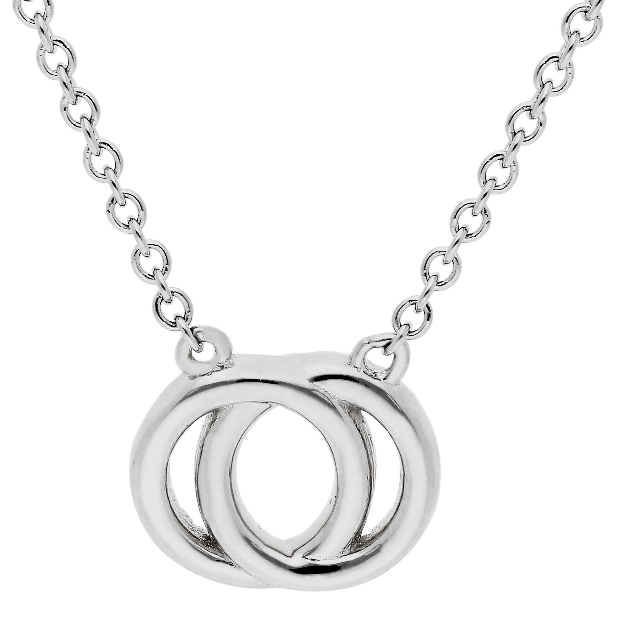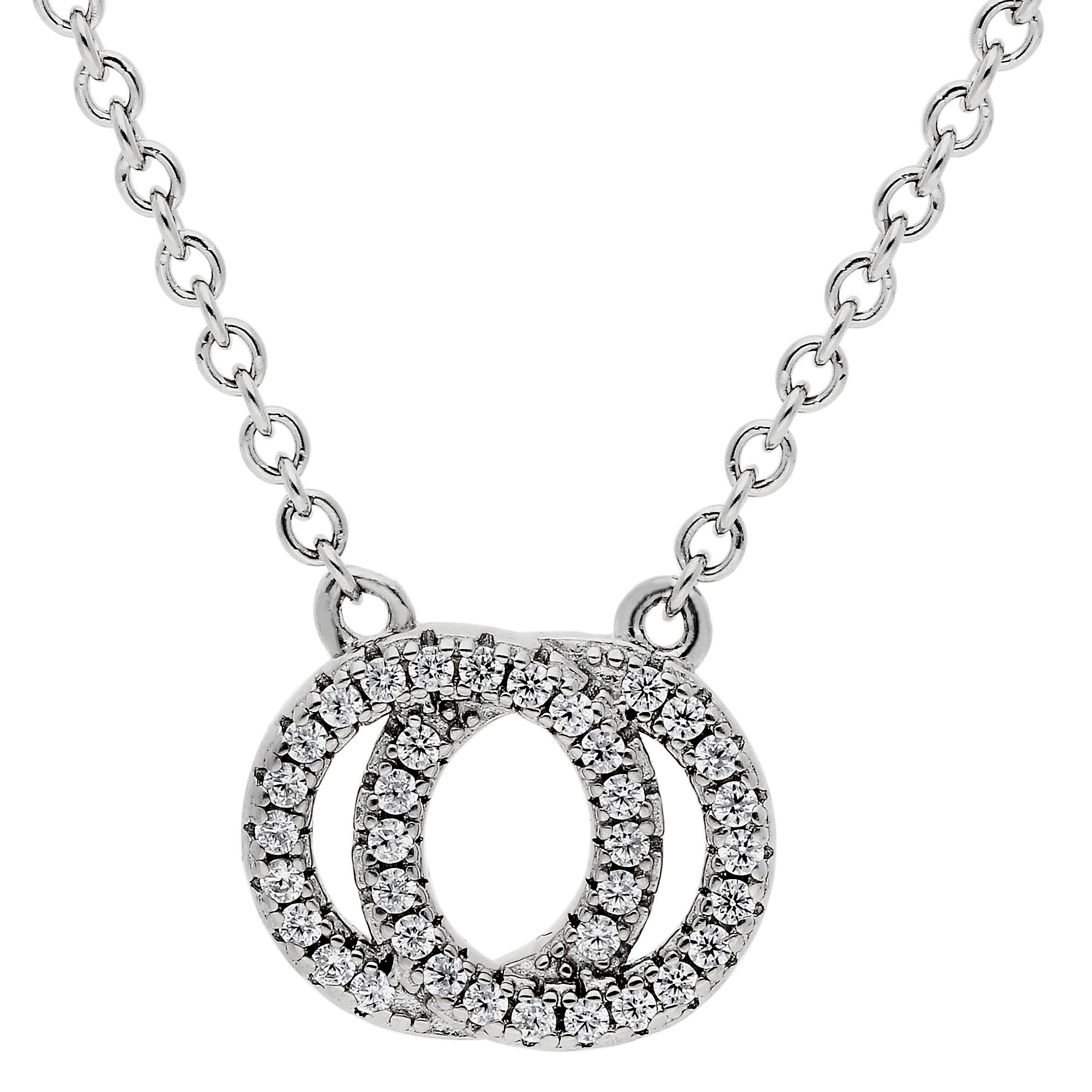 Elevate your style with this dazzling Cubic Zirconia Sterling Silver Necklace, a timeless addition to any jewellery collection. Featuring two interlocking circles crafted from polished sterling silver and set with sparkling cubic zirconia stones, this necklace exudes elegance and charm. The intricate design symbolises unity and connection, making it a meaningful accessory for any occasion.