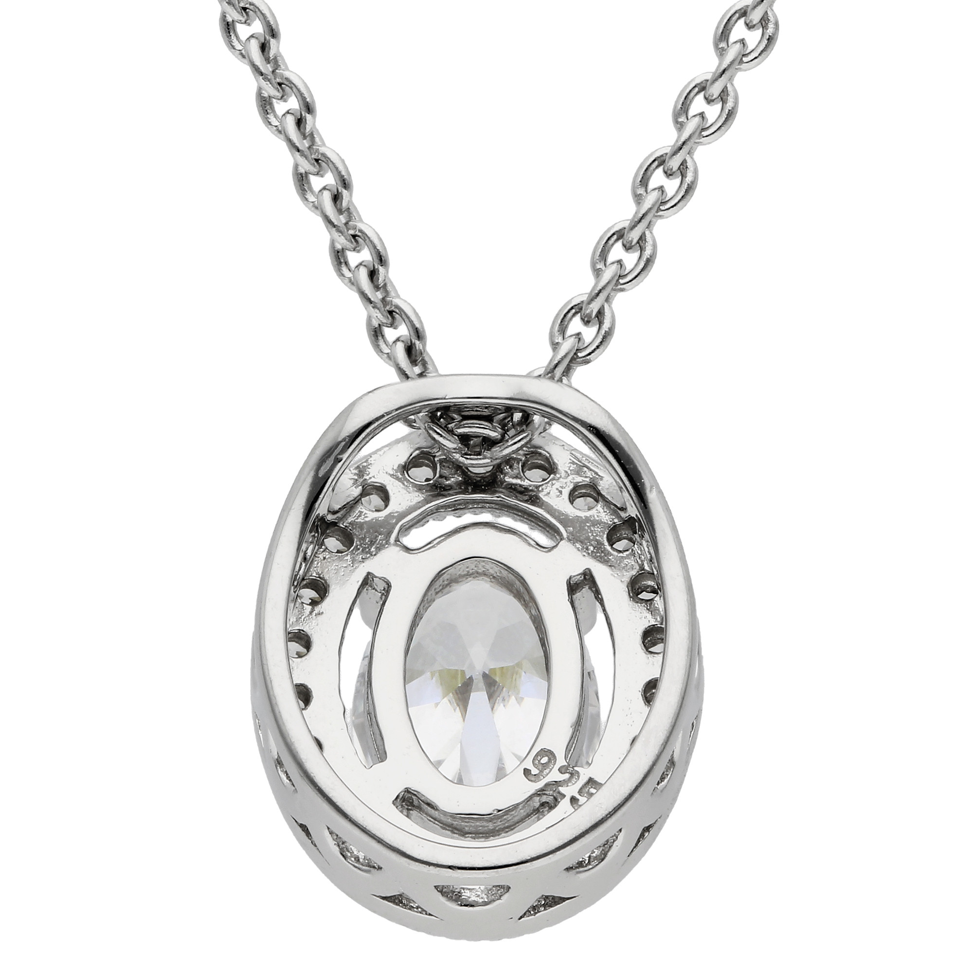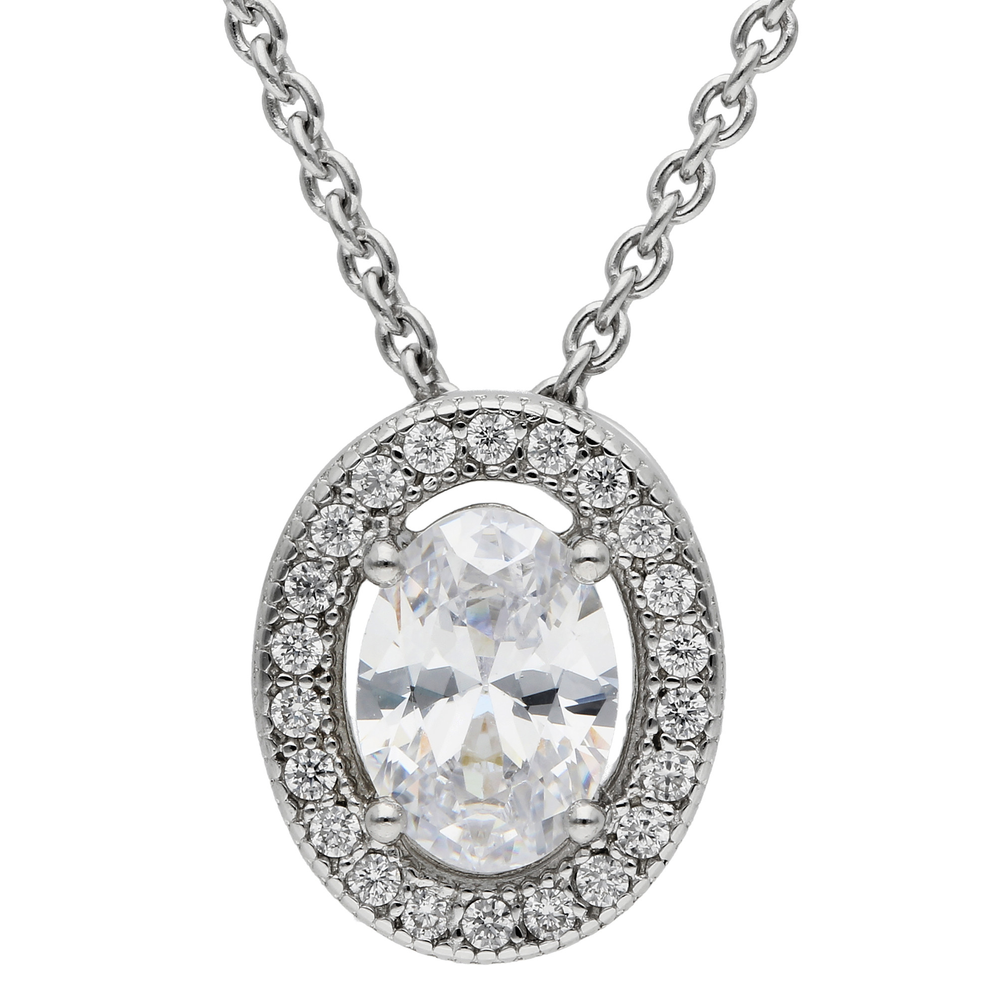 Add a timeless sparkle to your jewellery collection with this stunning Cubic Zirconia and Sterling Silver Pendant. The centrepiece is a beautifully faceted oval cubic zirconia, framed by a delicate halo of smaller cubic zirconias that catch the light from every angle. Crafted in polished sterling silver, this pendant exudes elegance and sophistication.