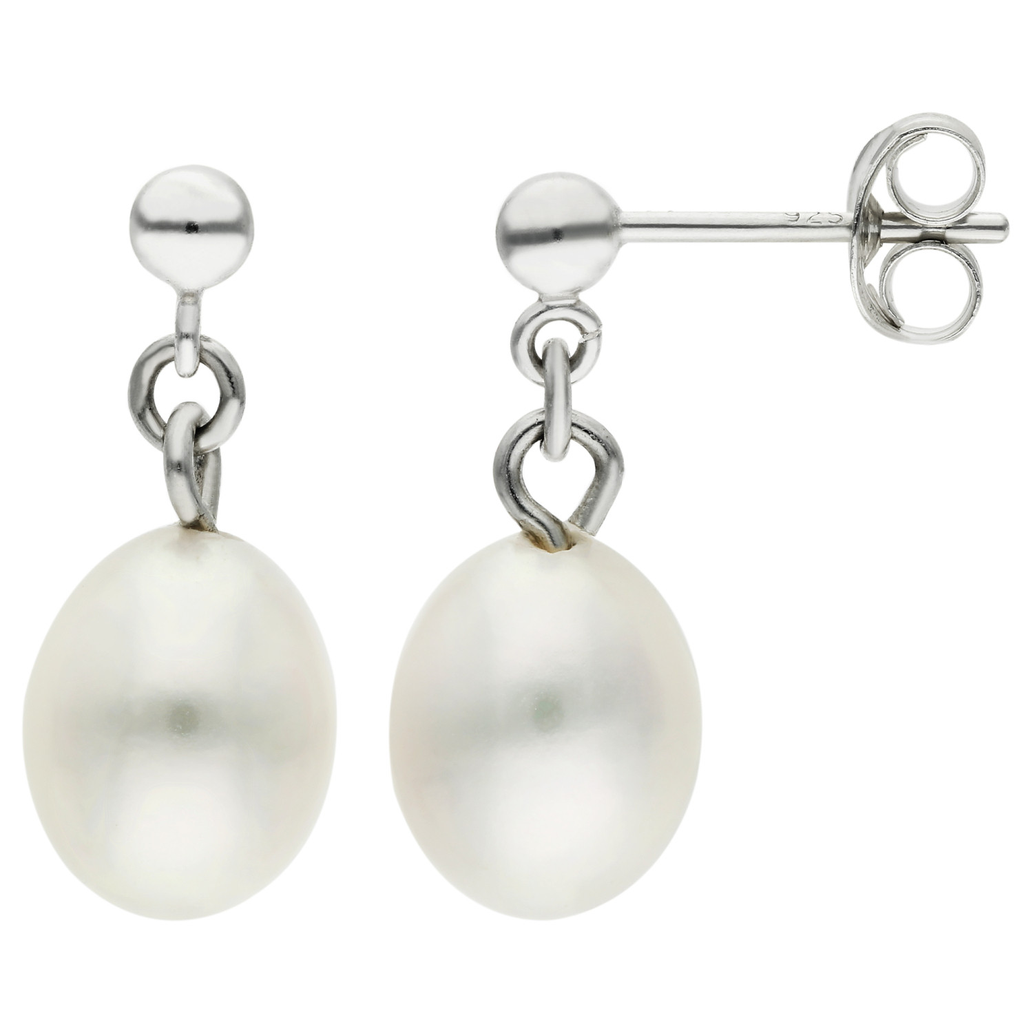 Indulge in the timeless elegance of our Sterling Silver Pearl Drop Earrings, crafted for women who appreciate classic style with a touch of sophistication. Each earring features a plump cultured pearl that dangles delicately from a sterling silver ball stud surmount, creating a graceful silhouette that complements any outfit. These earrings are designed with posts and scroll backs, ensuring a secure and comfortable fit for all-day wear. Perfect for both formal events and everyday elegance, these pearl drop earrings bring a refined touch to any jewellery collection, adding a seamless blend of traditional charm and contemporary flair.