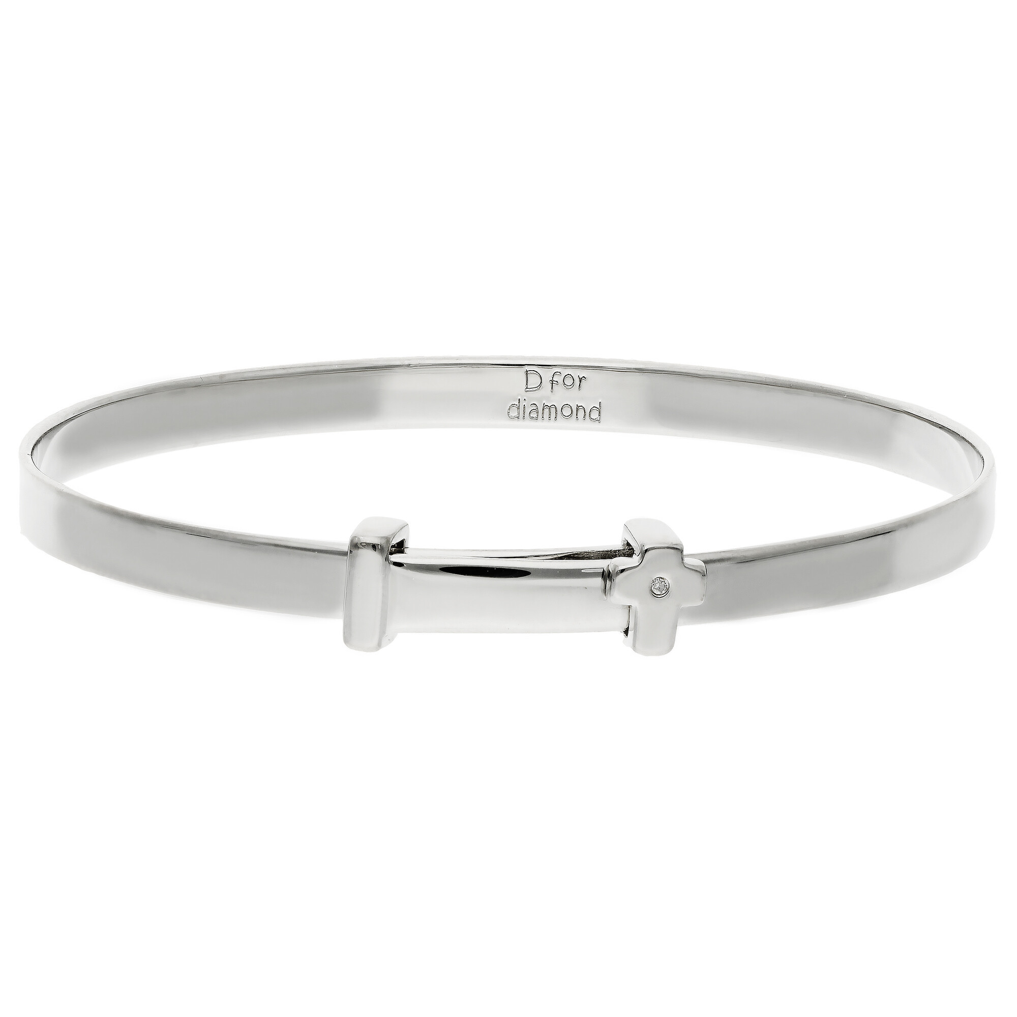 Treat your little one to the exquisite charm of this D for Diamond Children's Sterling Silver Bangle. Perfectly crafted for small wrists, this elegant bangle is made from recycled sterling silver with a premium platinum plating for added durability and shine. At the centre of the design, a tiny single diamond (0.003ct) is delicately set within a cross motif, adding a subtle sparkle that is sure to delight. This bangle is not only a beautiful accessory but also a meaningful gift that can be cherished as a keepsake for years to come, ideal for birthdays, christenings, or as a special surprise.