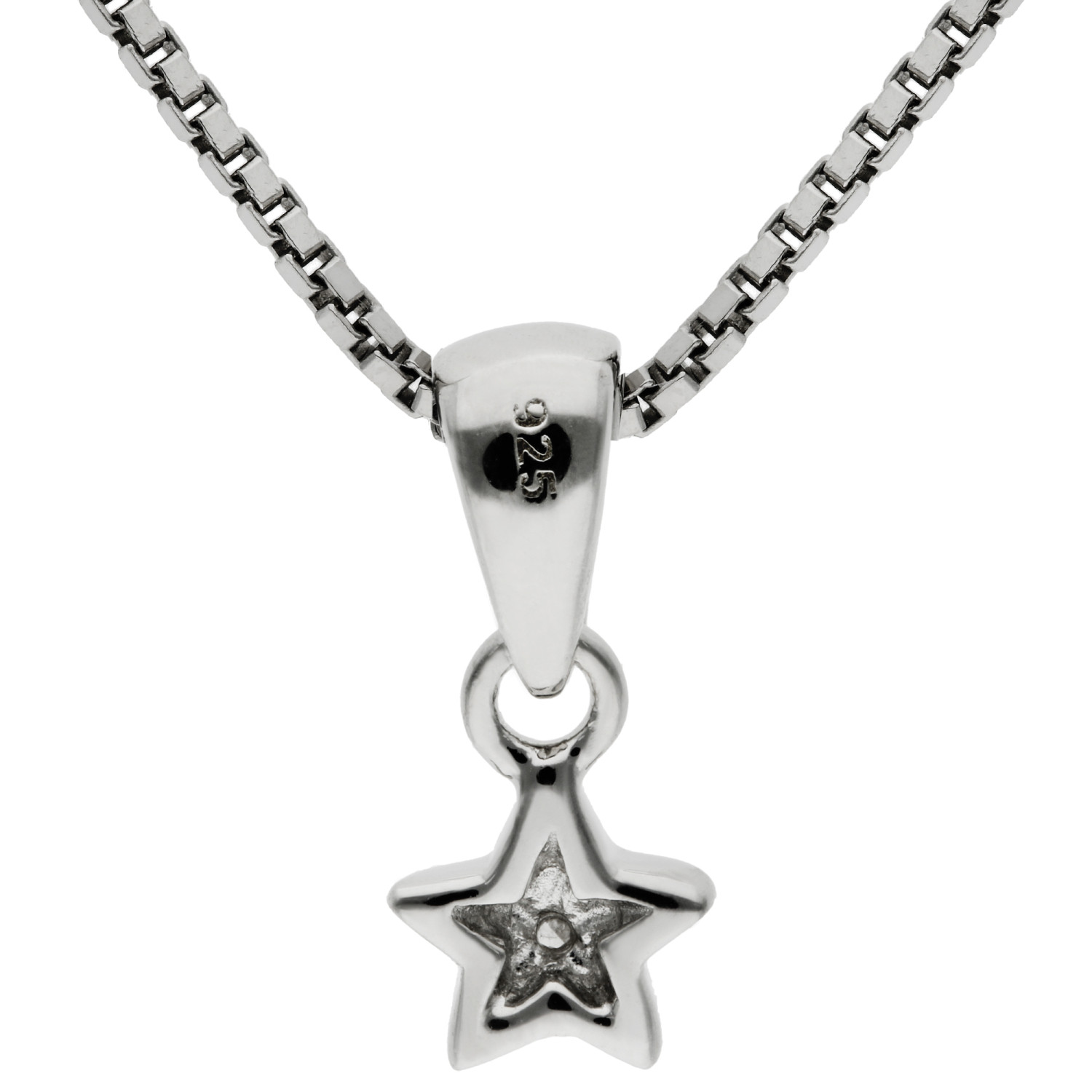 Add a touch of sparkle to your jewellery collection with this delicate Sterling Silver Star Pendant. Featuring a tiny star design, this charming pendant is adorned with a central accent diamond that catches the light beautifully, adding a subtle yet captivating shimmer. Crafted with care, the star is held on a polished bail and accompanied by a 14-inch sterling silver box chain, making it perfect for children or those who prefer a shorter chain length.